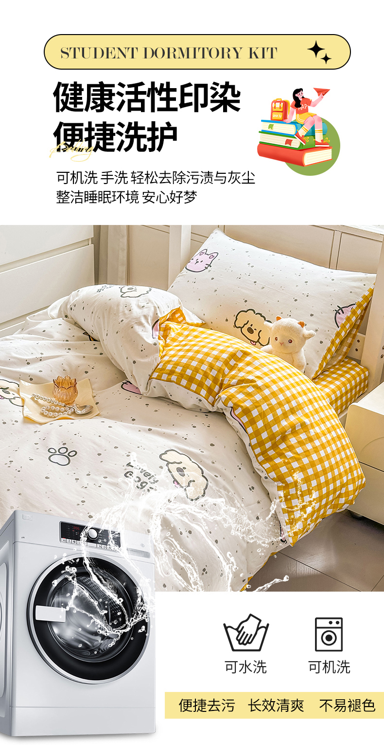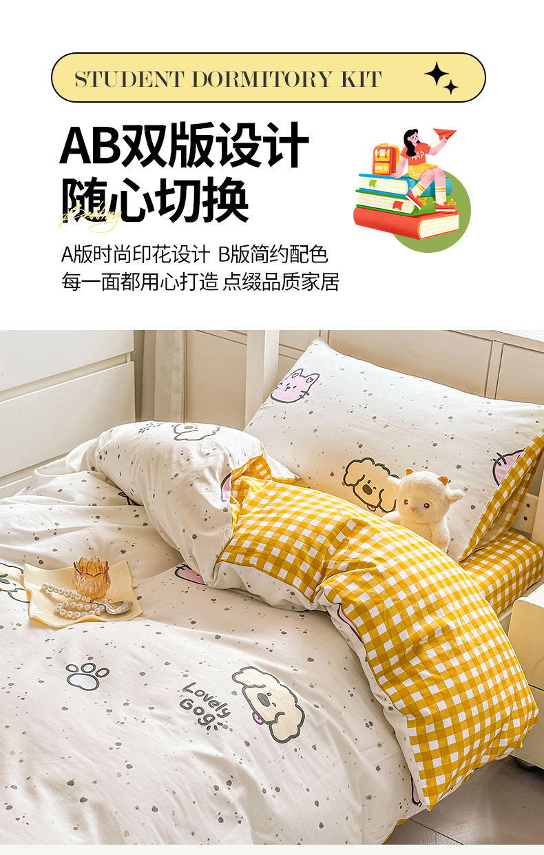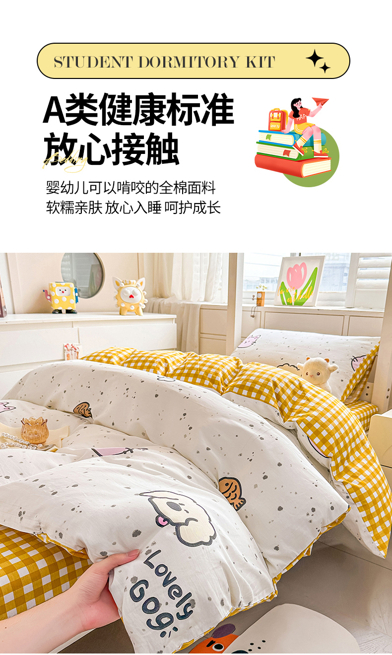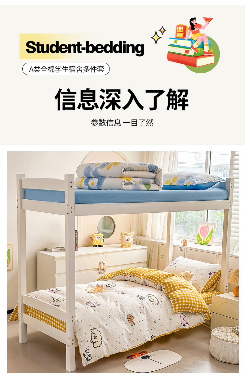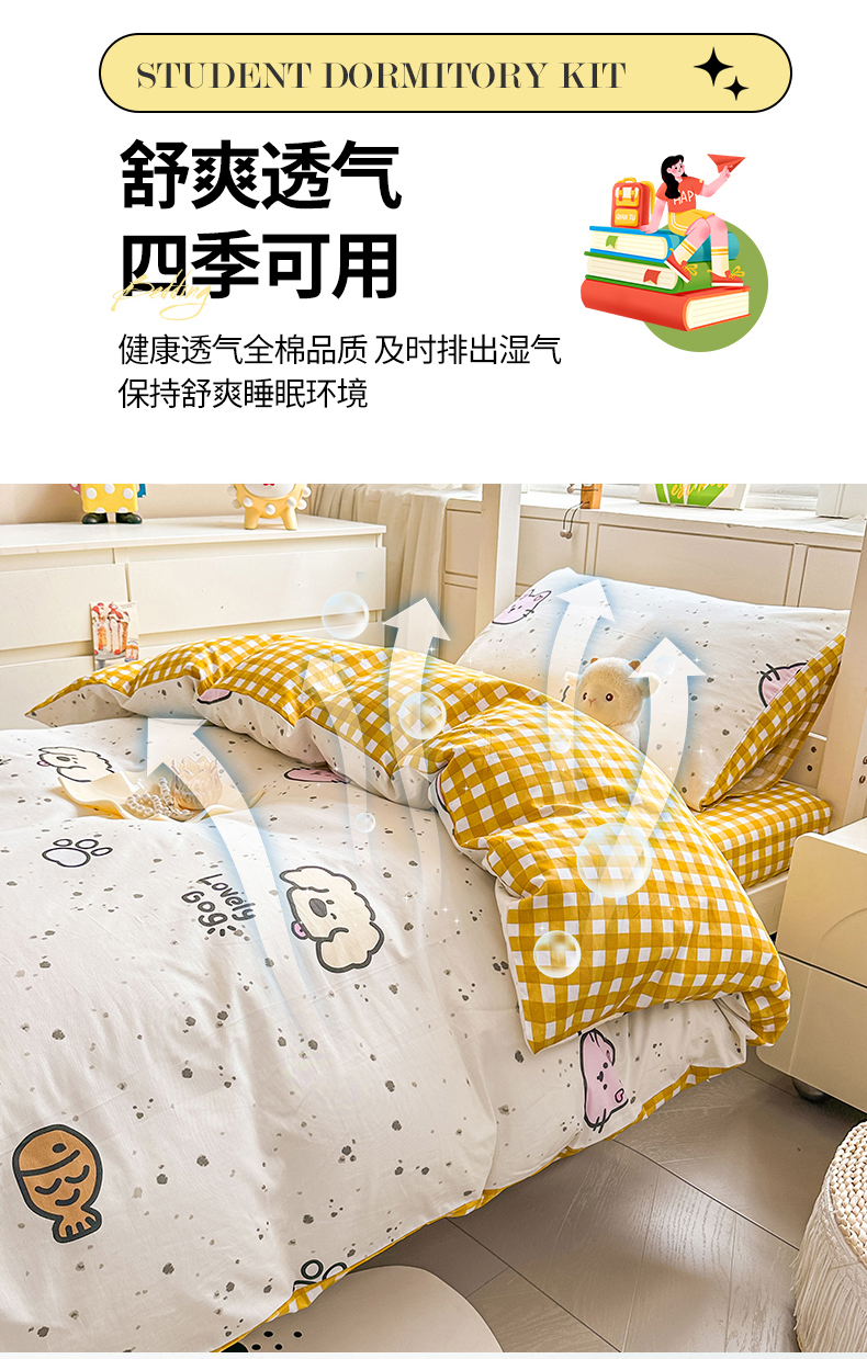 商品名称:西域种棉人·千百笠 2025新款全棉纯棉六件套大学生宿舍100%新疆棉花被子被褥一整套枕头床垫三件套 可爱猫