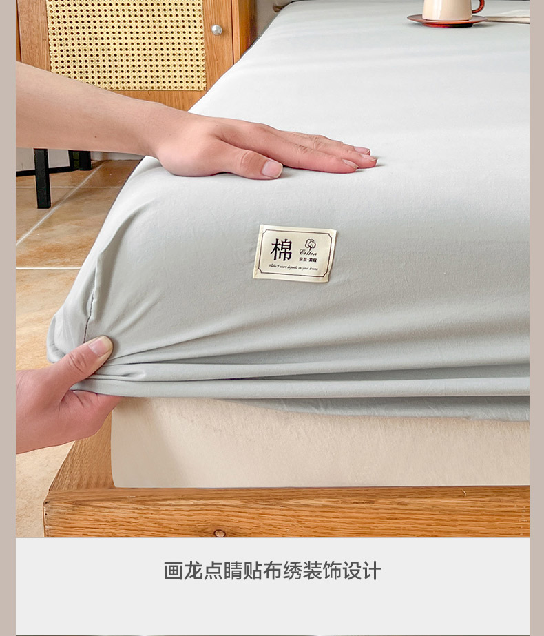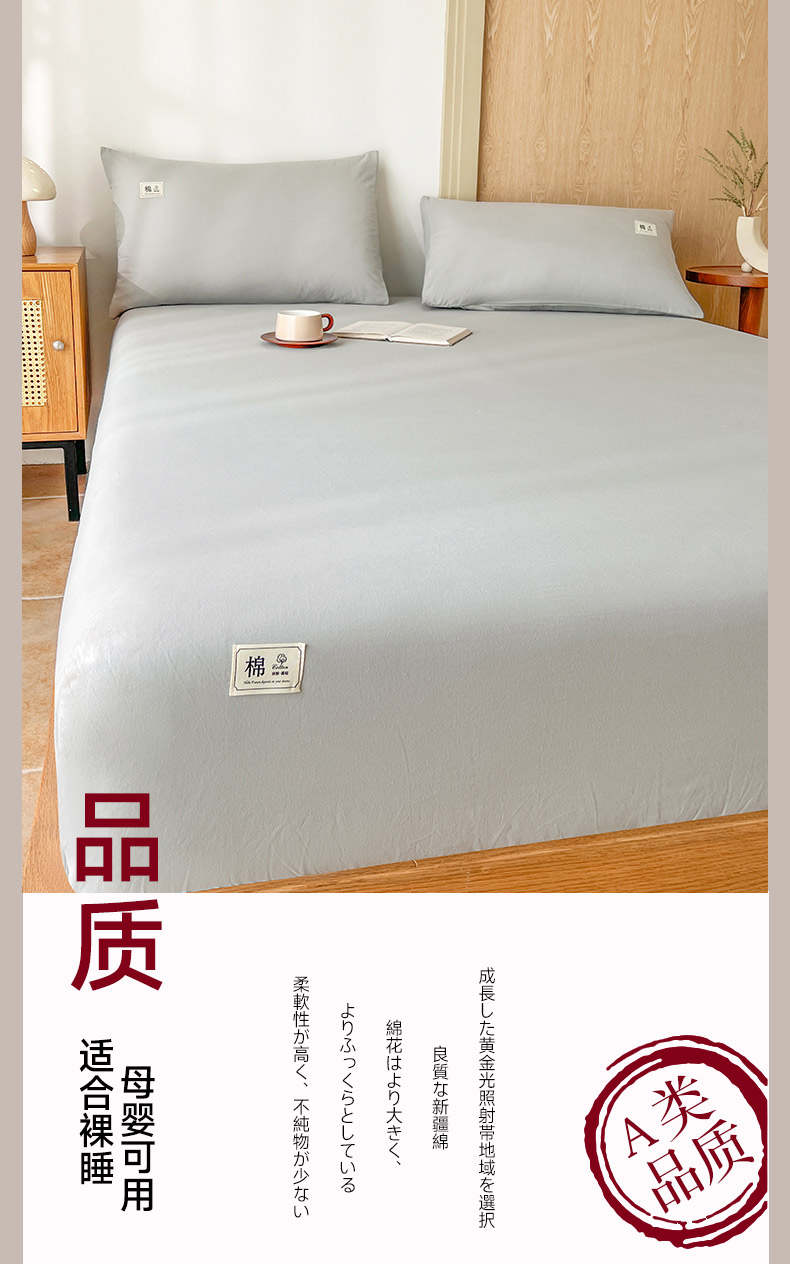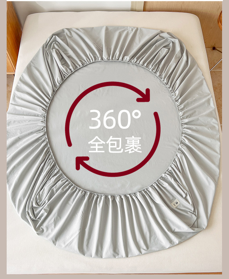 暖芯优选 2025新款40S13376纯色全棉水洗棉单品系列床笠单件-单床笠 浅灰