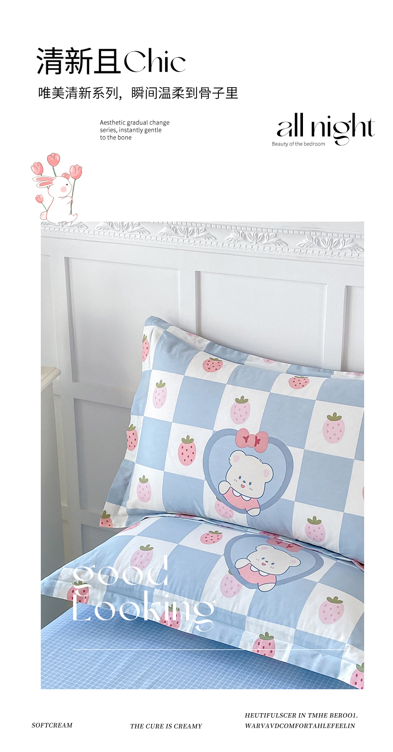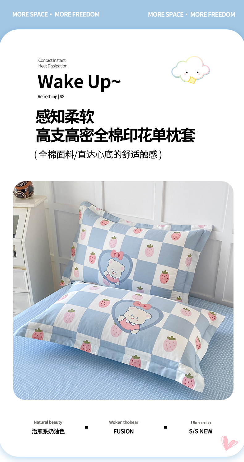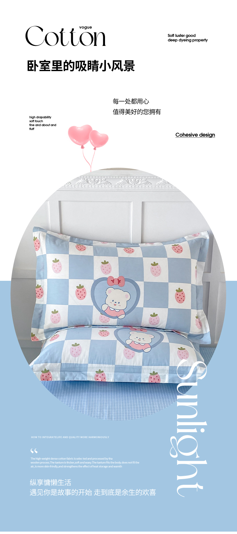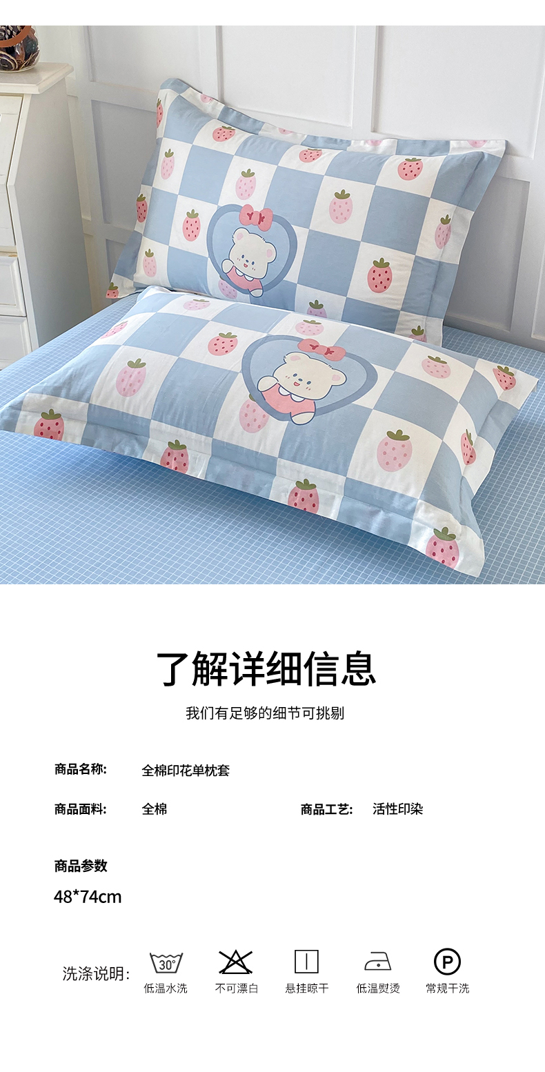 商品名称:小叮当家纺仓储工厂店 (爆款花型 长期款 不断货)2025年新款条纹卡通花卉纯棉全棉单只枕套一对装 玩具乐园-兰