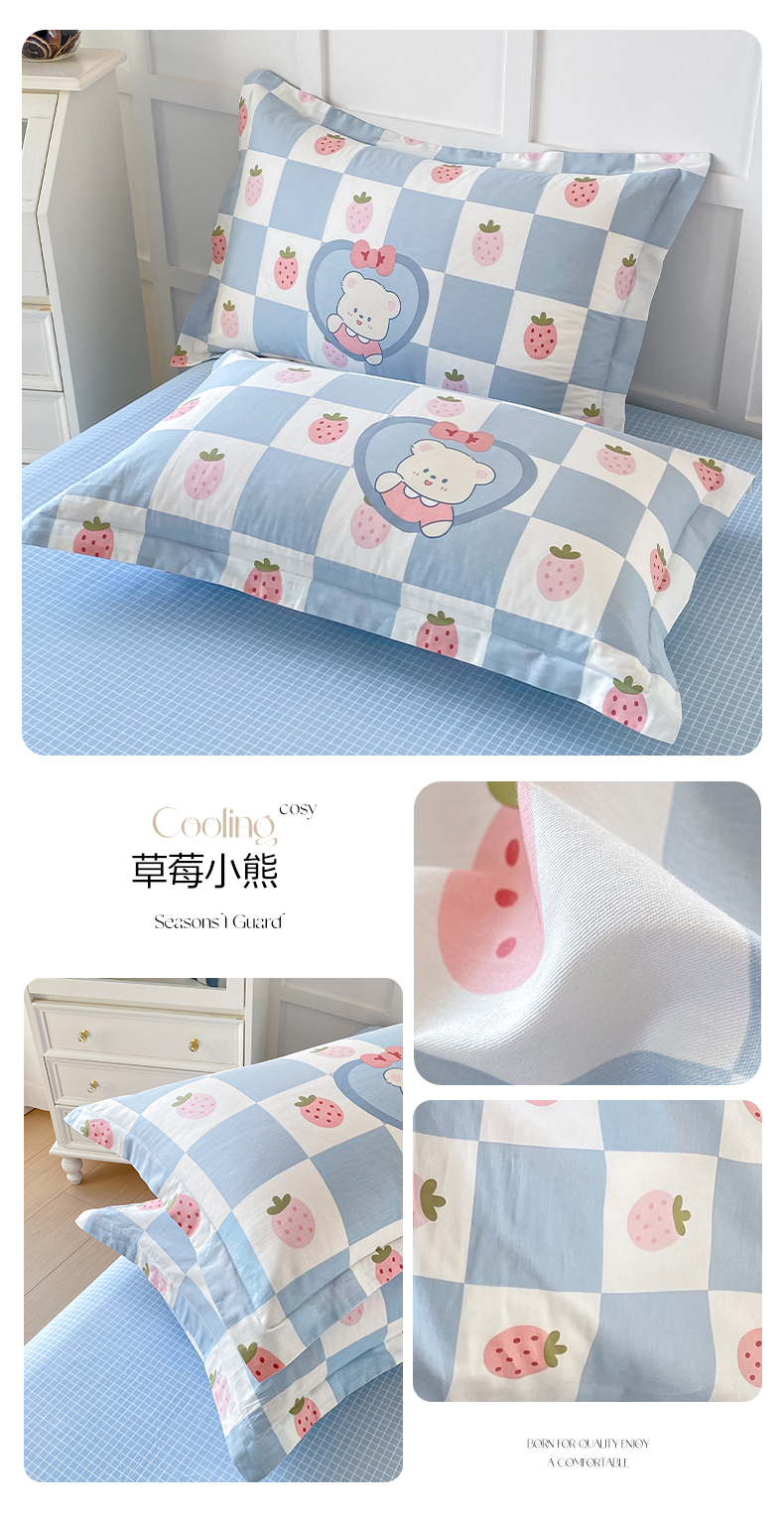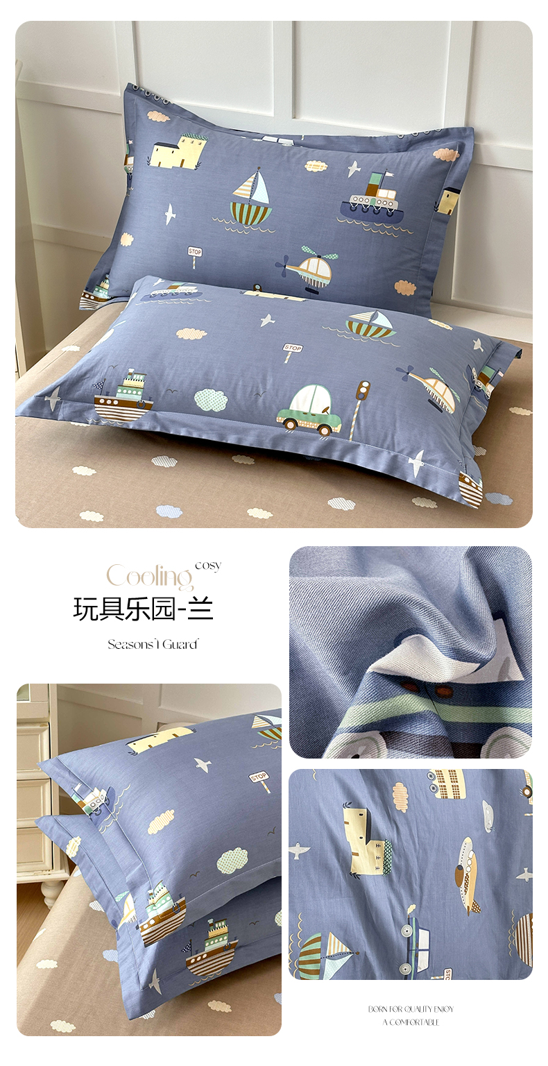 小叮当家纺仓储工厂店 (爆款花型 长期款 不断货)2025年新款条纹卡通花卉纯棉全棉单只枕套一对装 玩具乐园-兰