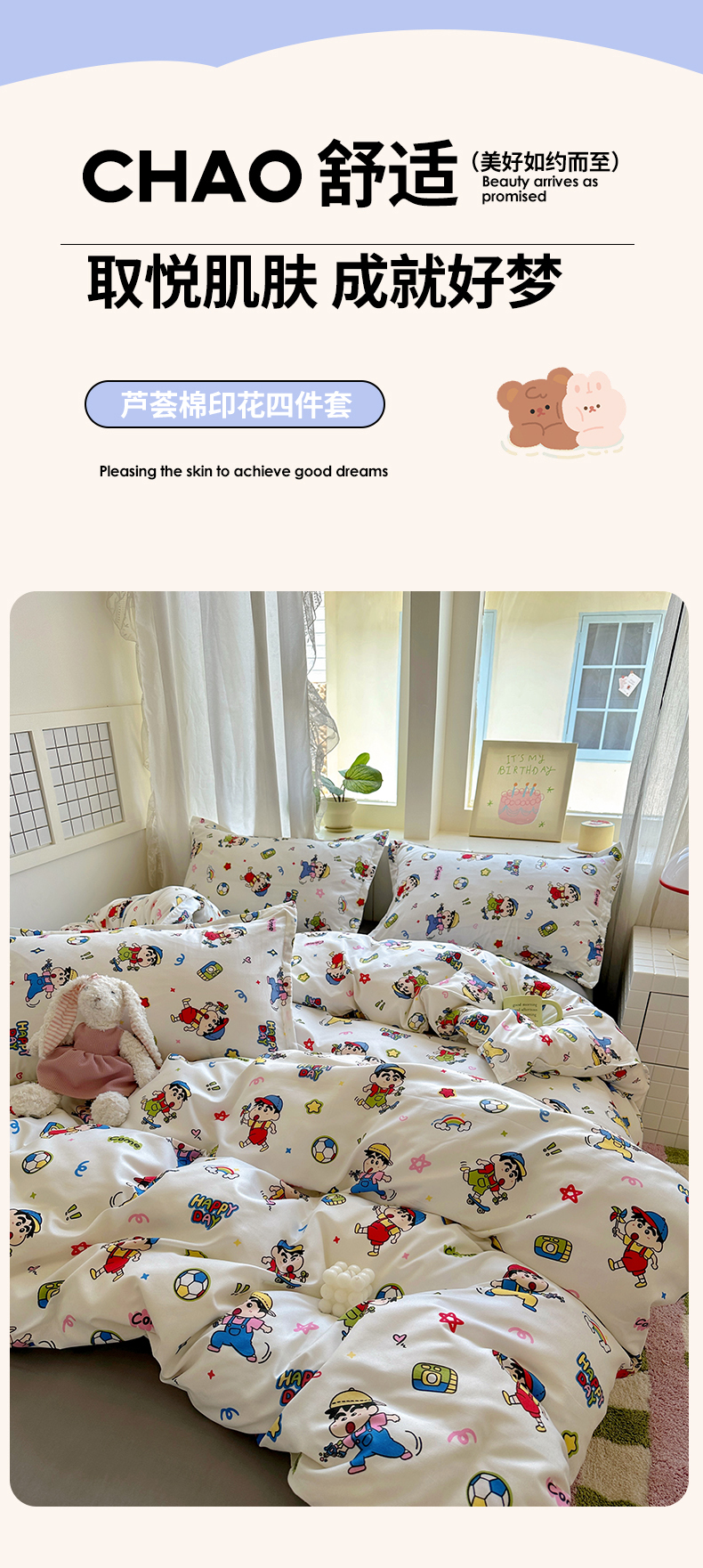 (总)宏源家纺 2025新款芦荟棉印花亲肤四件套,花园熊,快乐玩伴,萌萌猫粉,萌萌猫灰,甜品派对-蓝,甜品派对-玉,小猫日记,小新灰,小新蓝,熊仔仔