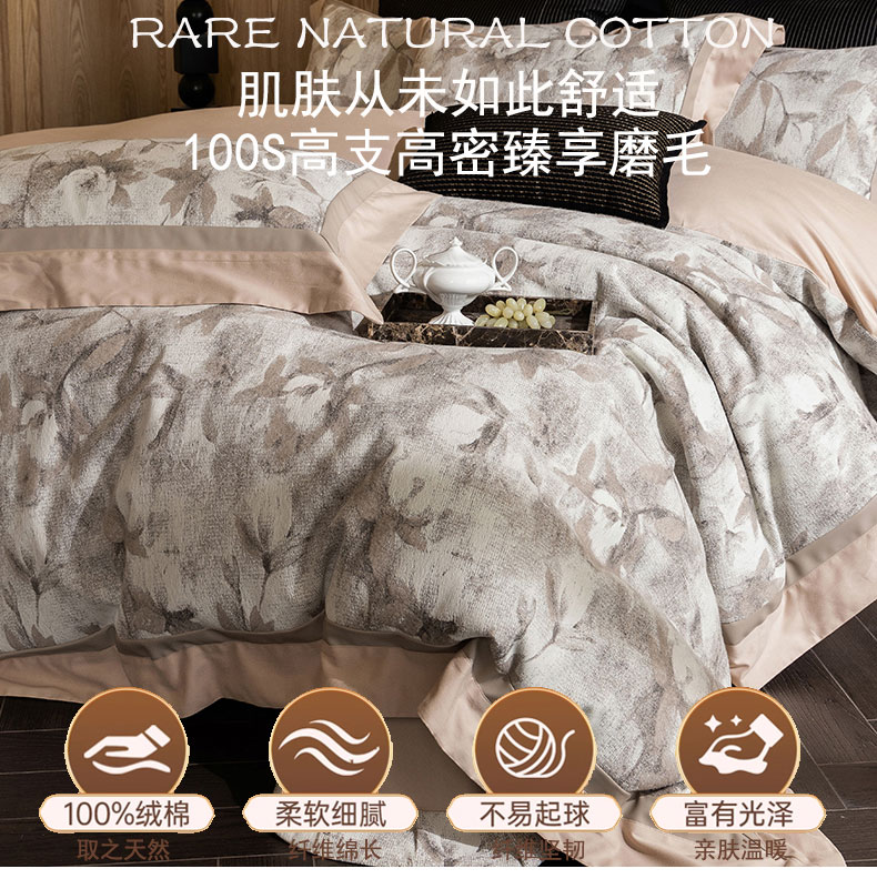 (总)蒂爵 2025新款A版真丝棉b版新疆长绒棉时尚高端四件套-云梦,云梦-丁香紫,云梦-焦糖棕,云梦-琉璃金,云梦-烟灰色