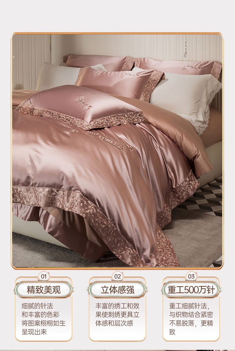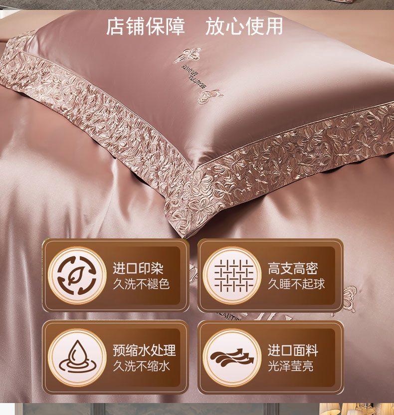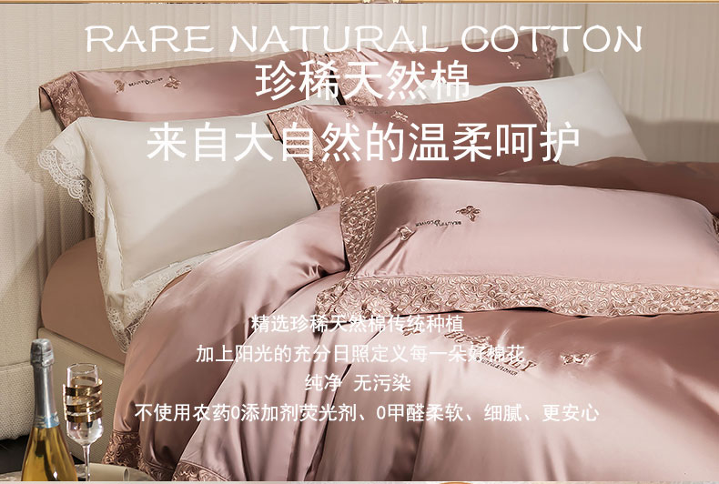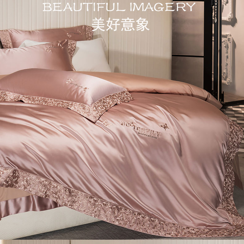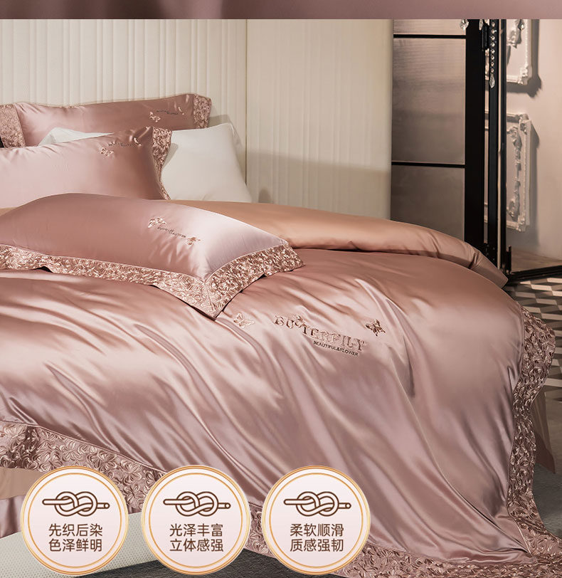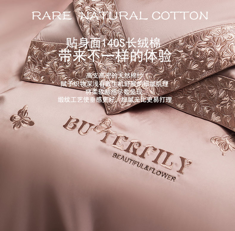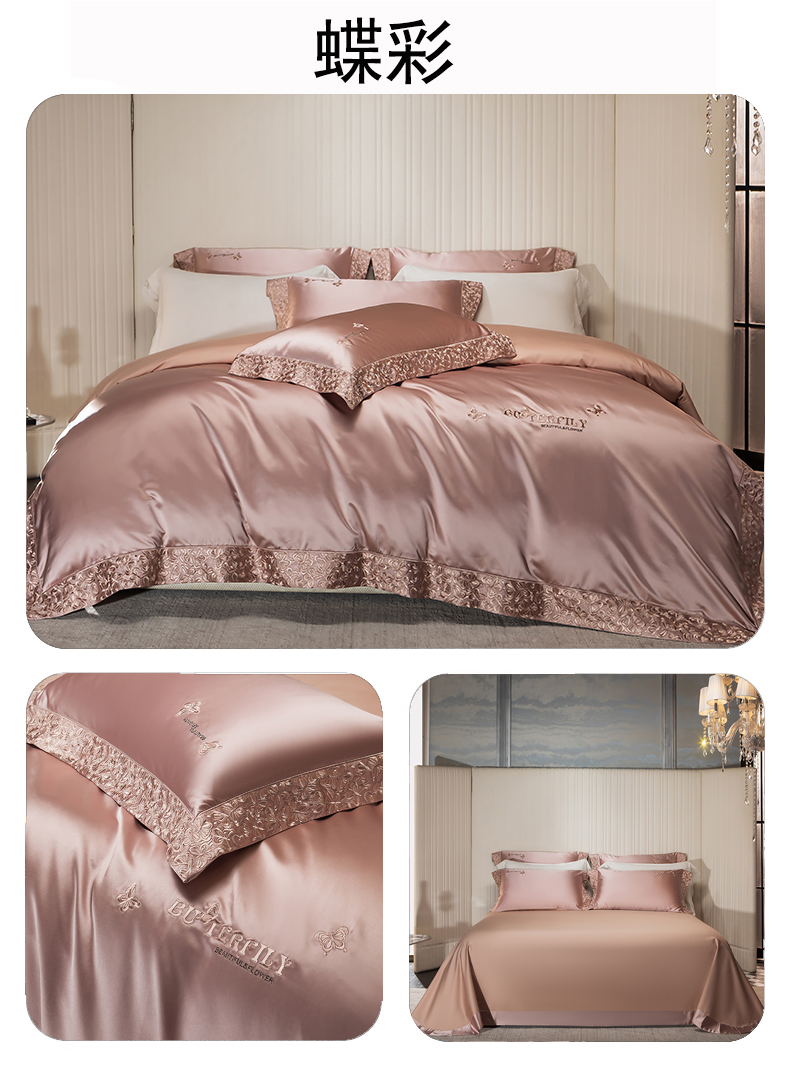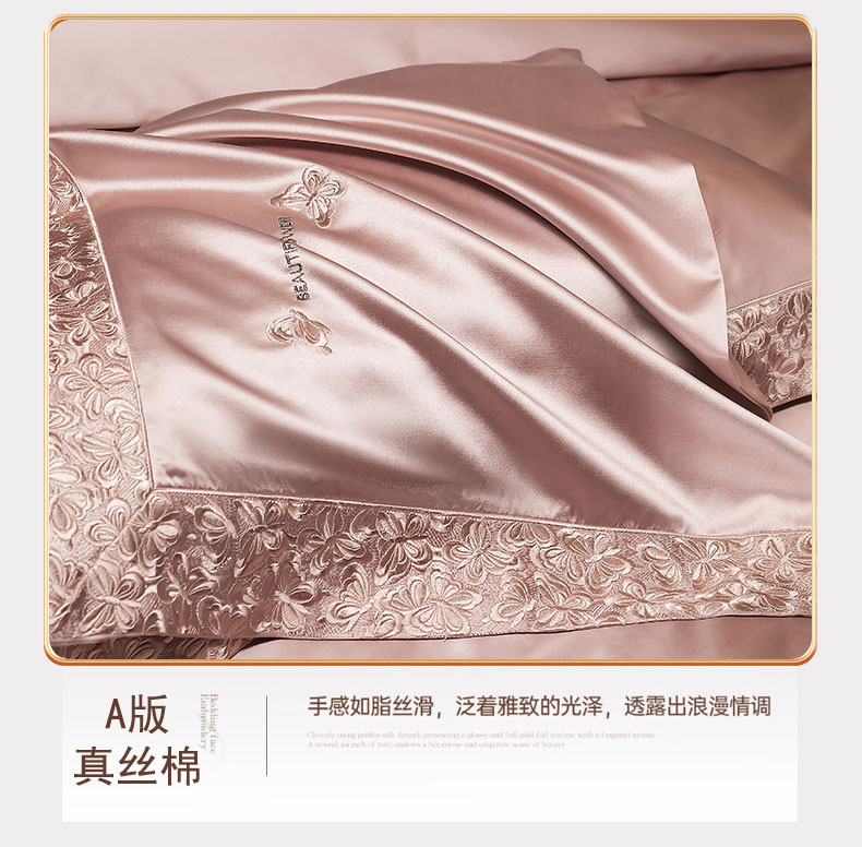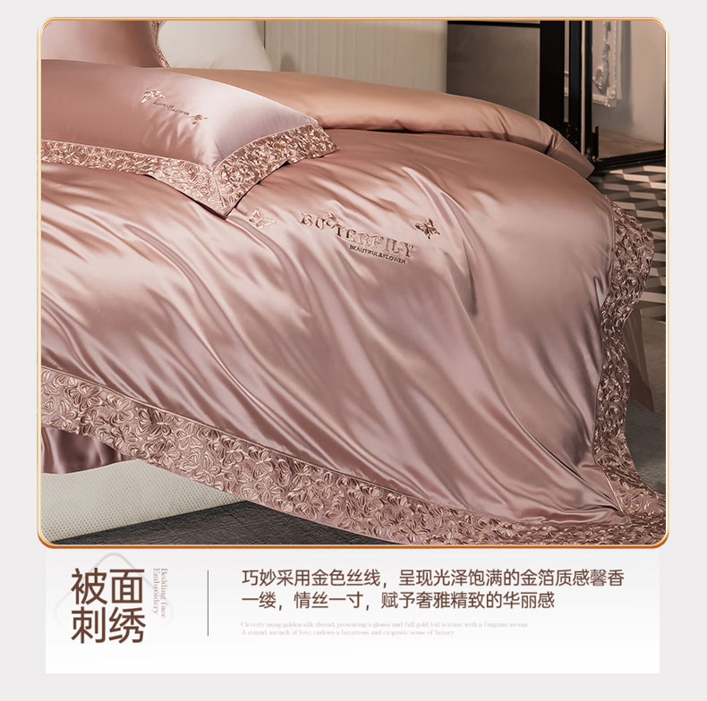 商品名称:蒂爵 2025新款A版真丝棉b版新疆长绒棉时尚高端四件套-蝶彩 蝶彩-玫瑰金