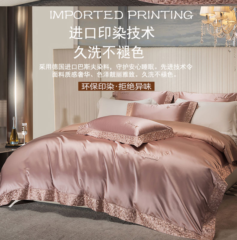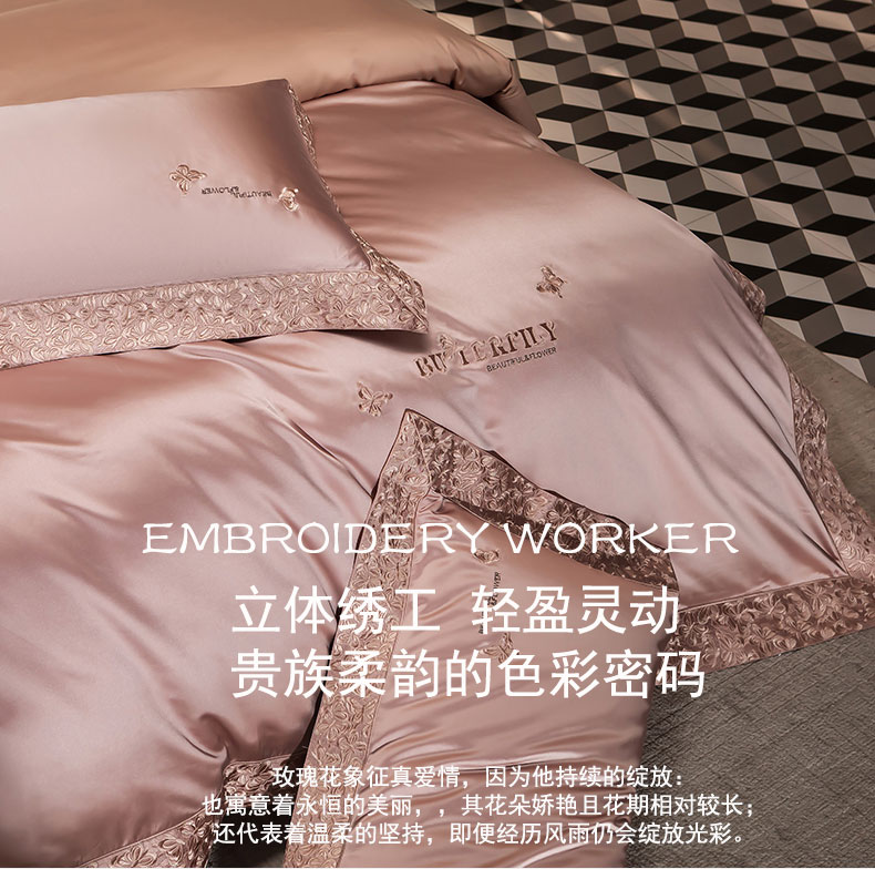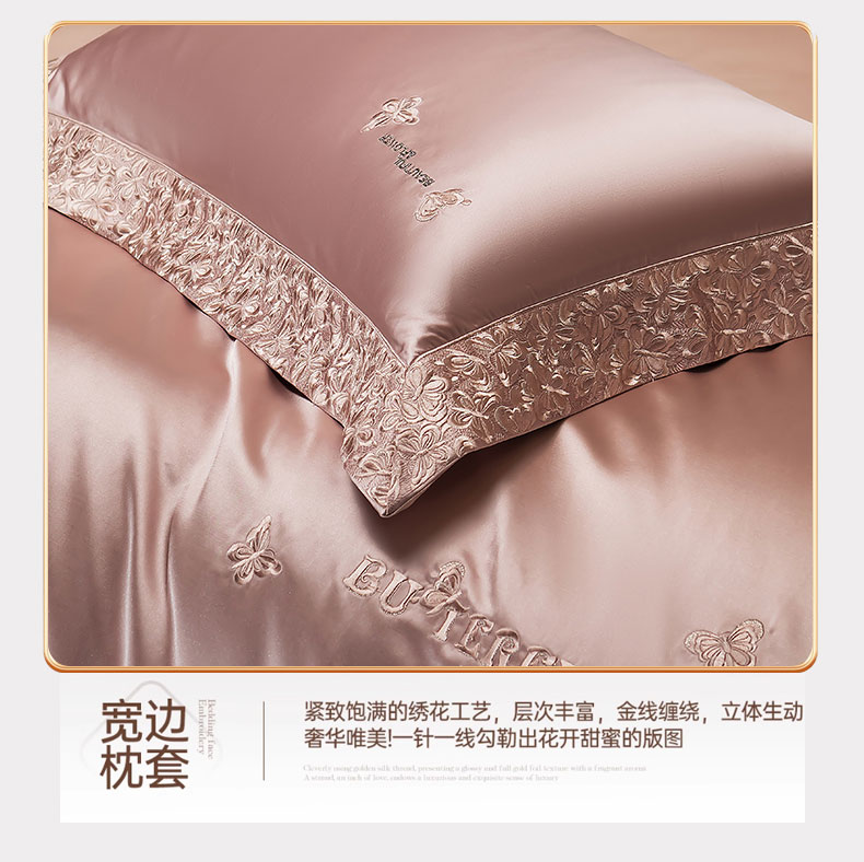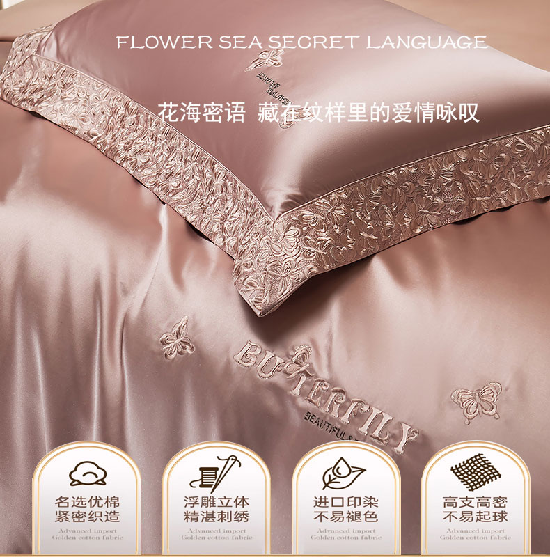 蒂爵 2025新款A版真丝棉b版新疆长绒棉时尚高端四件套-蝶彩 蝶彩-玫瑰金