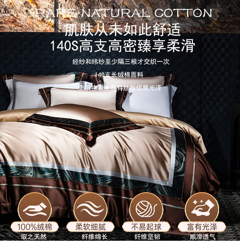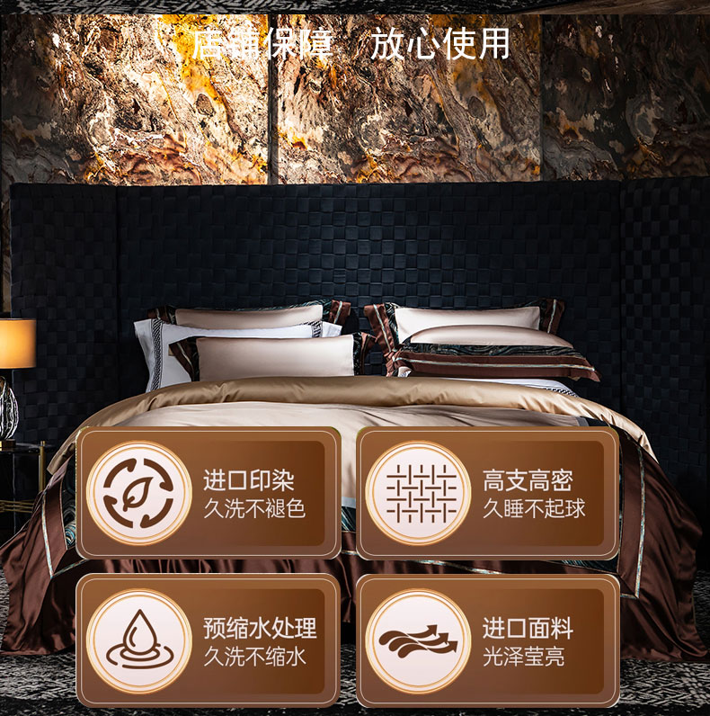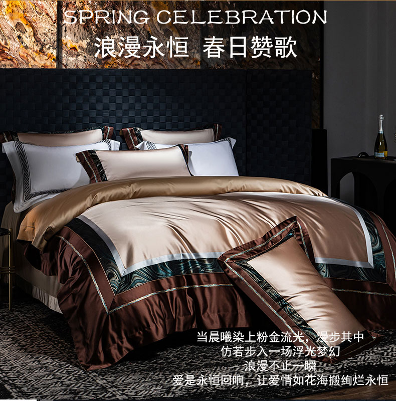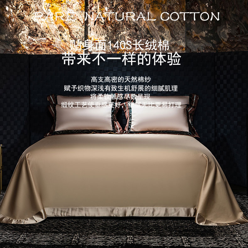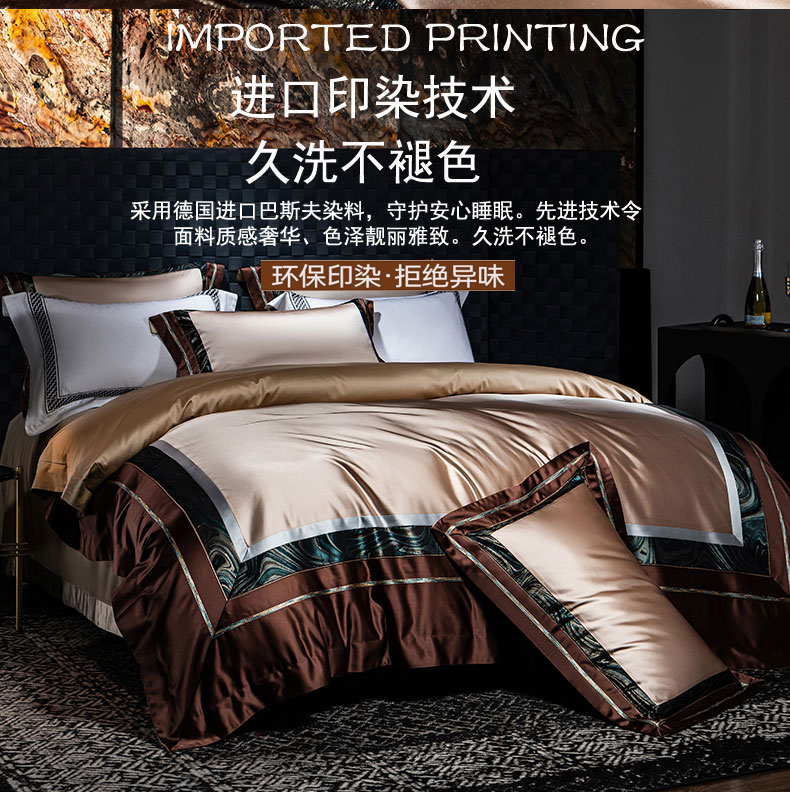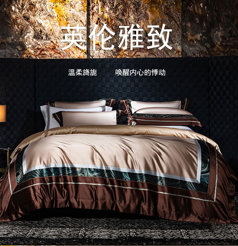 商品名称:蒂爵 2025新款A版真丝棉b版新疆长绒棉时尚高端四件套-英伦雅致 英伦雅致-香槟