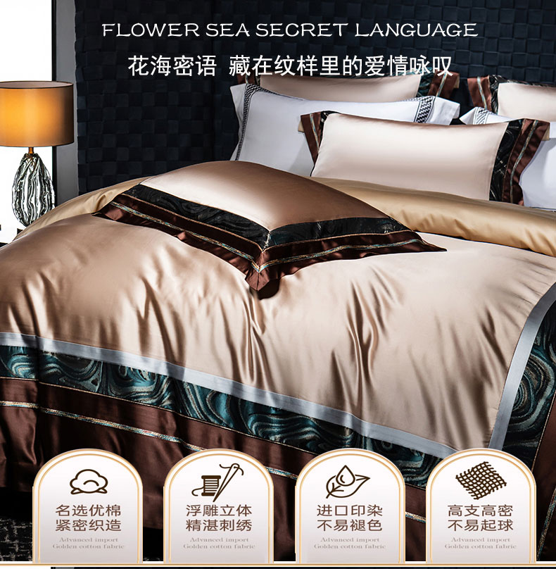 (总)蒂爵 全棉纯棉长绒棉大绣花婚庆四件套,家业兴旺,缘来是你,百花贺喜,玫瑰爱恋,玫瑰爱恋金,情意绵绵