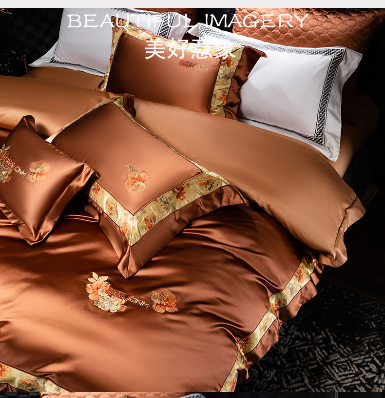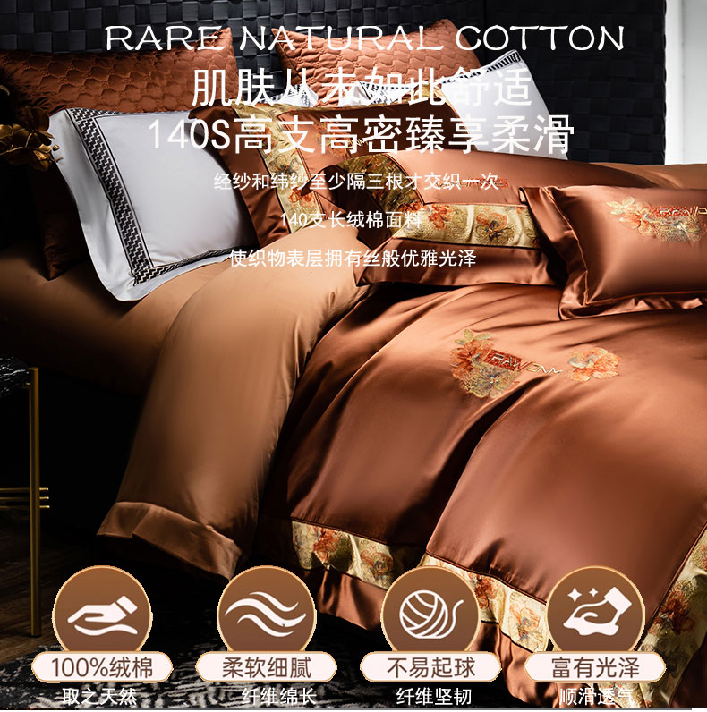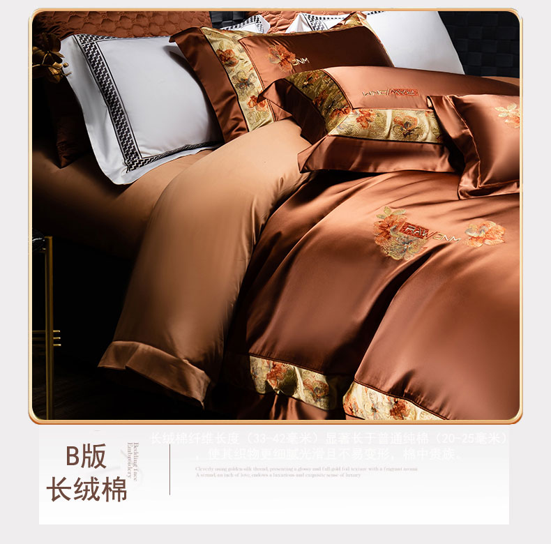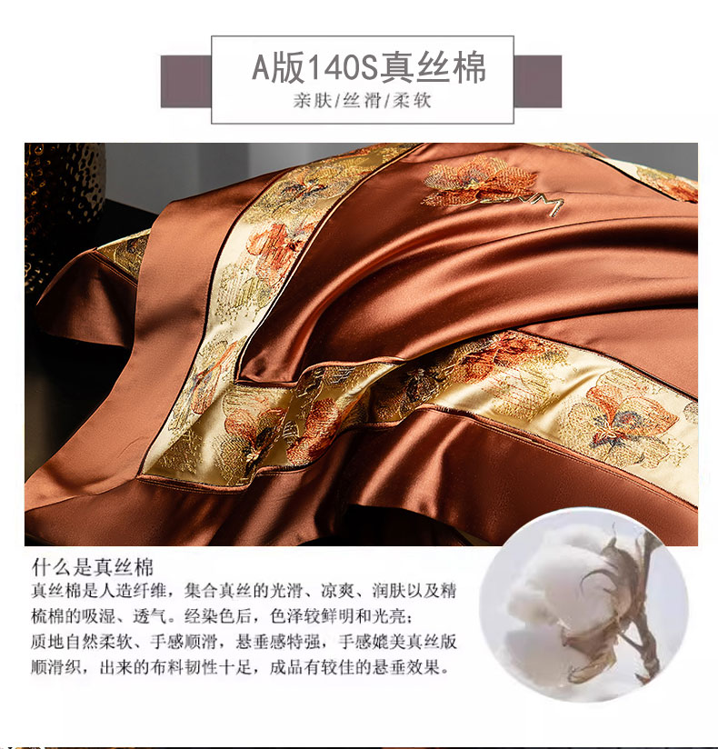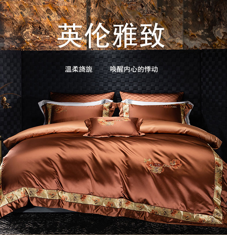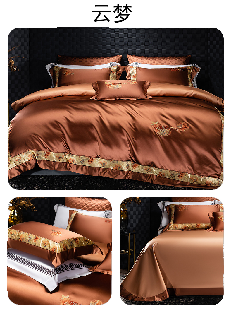 商品名称:蒂爵 2025新款A版真丝棉b版新疆长绒棉时尚高端四件套-云梦 云梦-焦糖棕