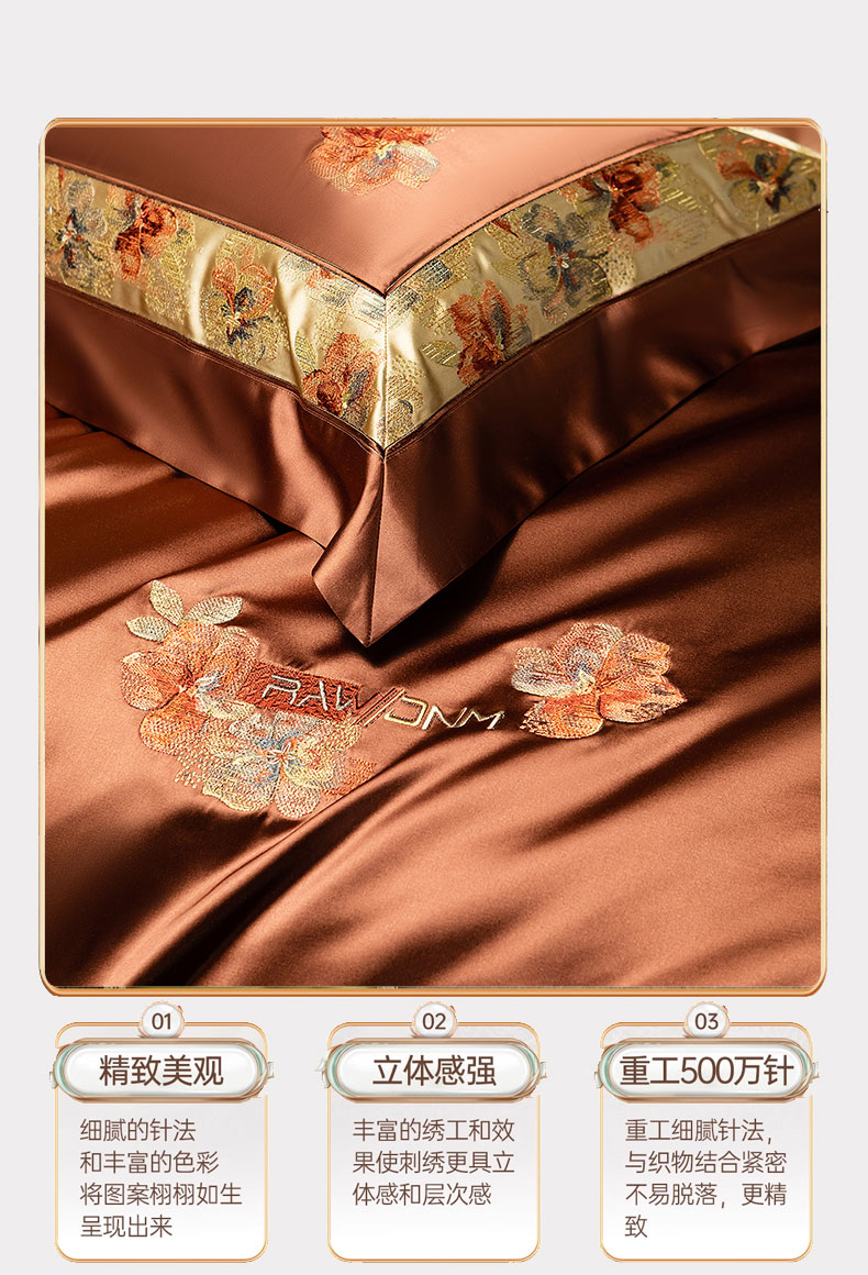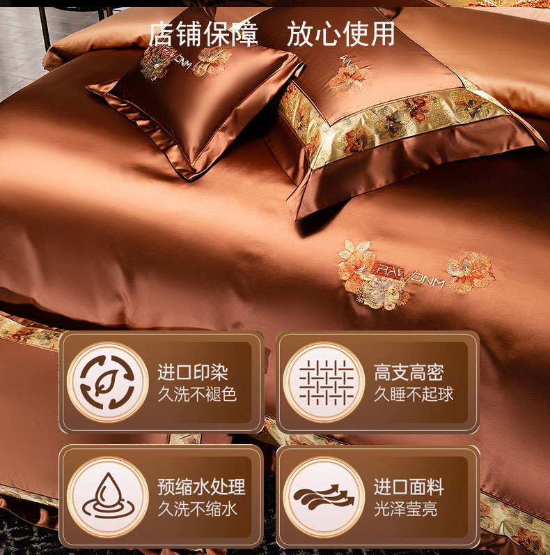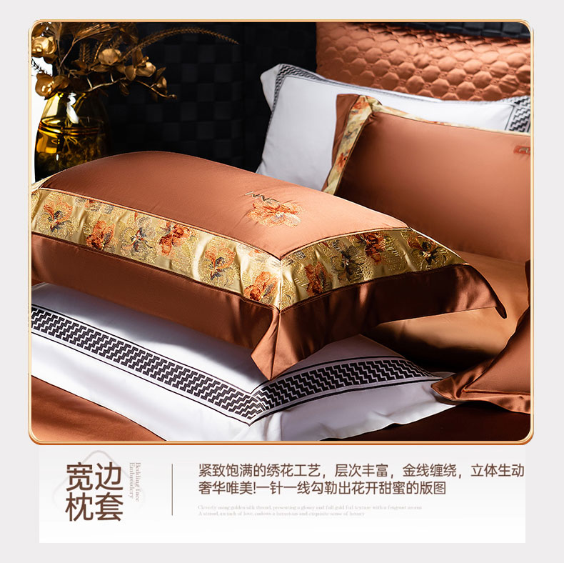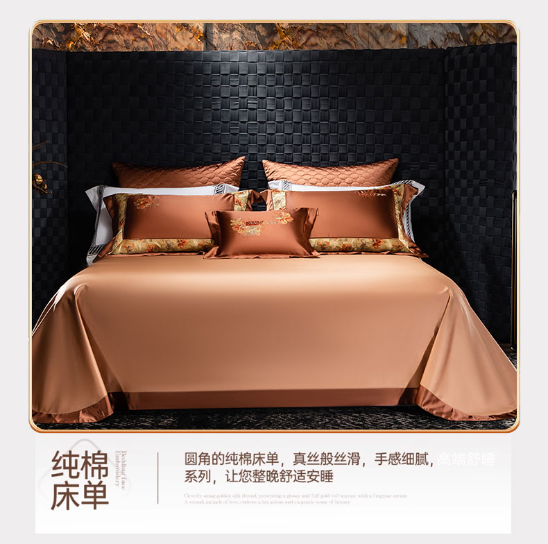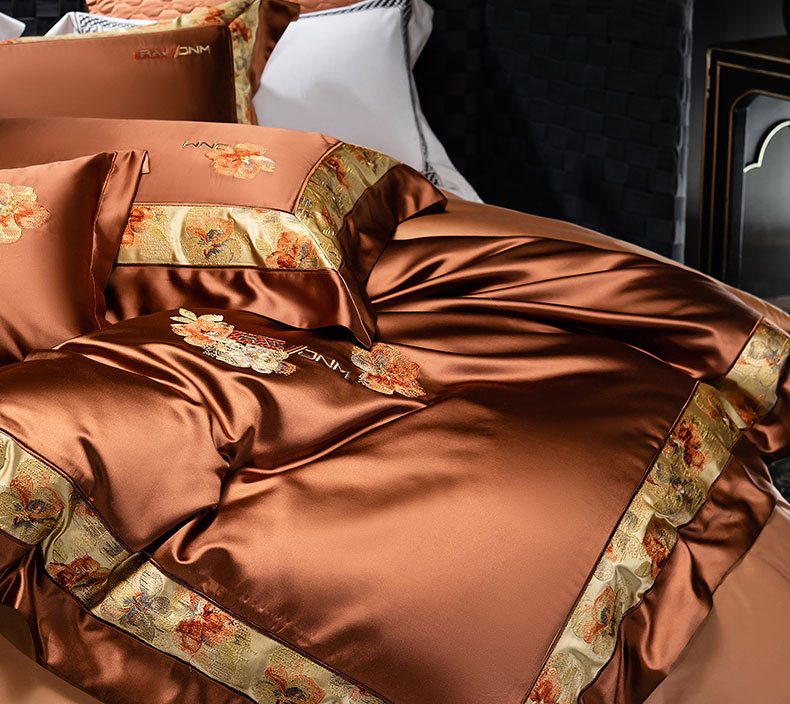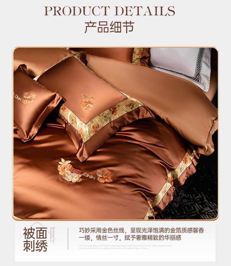 商品名称:蒂爵 2025新款A版真丝棉b版新疆长绒棉时尚高端四件套-云梦 云梦-焦糖棕