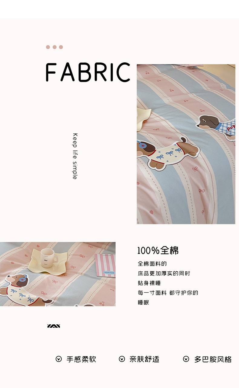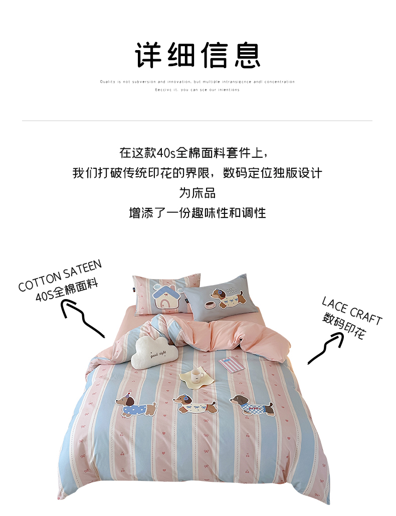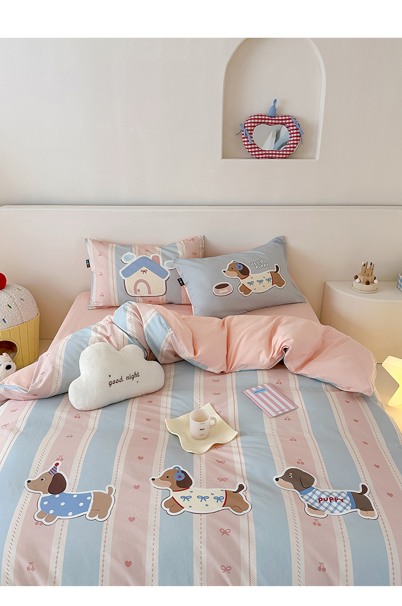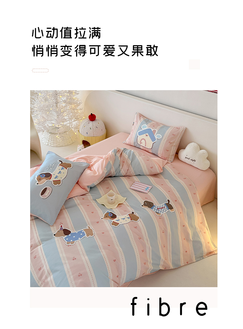 当前位置: 91家纺网 > 商品网购 > 床品套件 > 四件套 > 全棉普通四件套 > RYB红黄兰 开学季2025新款ins设计师原创大版卡通数码印花40s全棉纯棉四件套-场景二 甜心腊肠狗