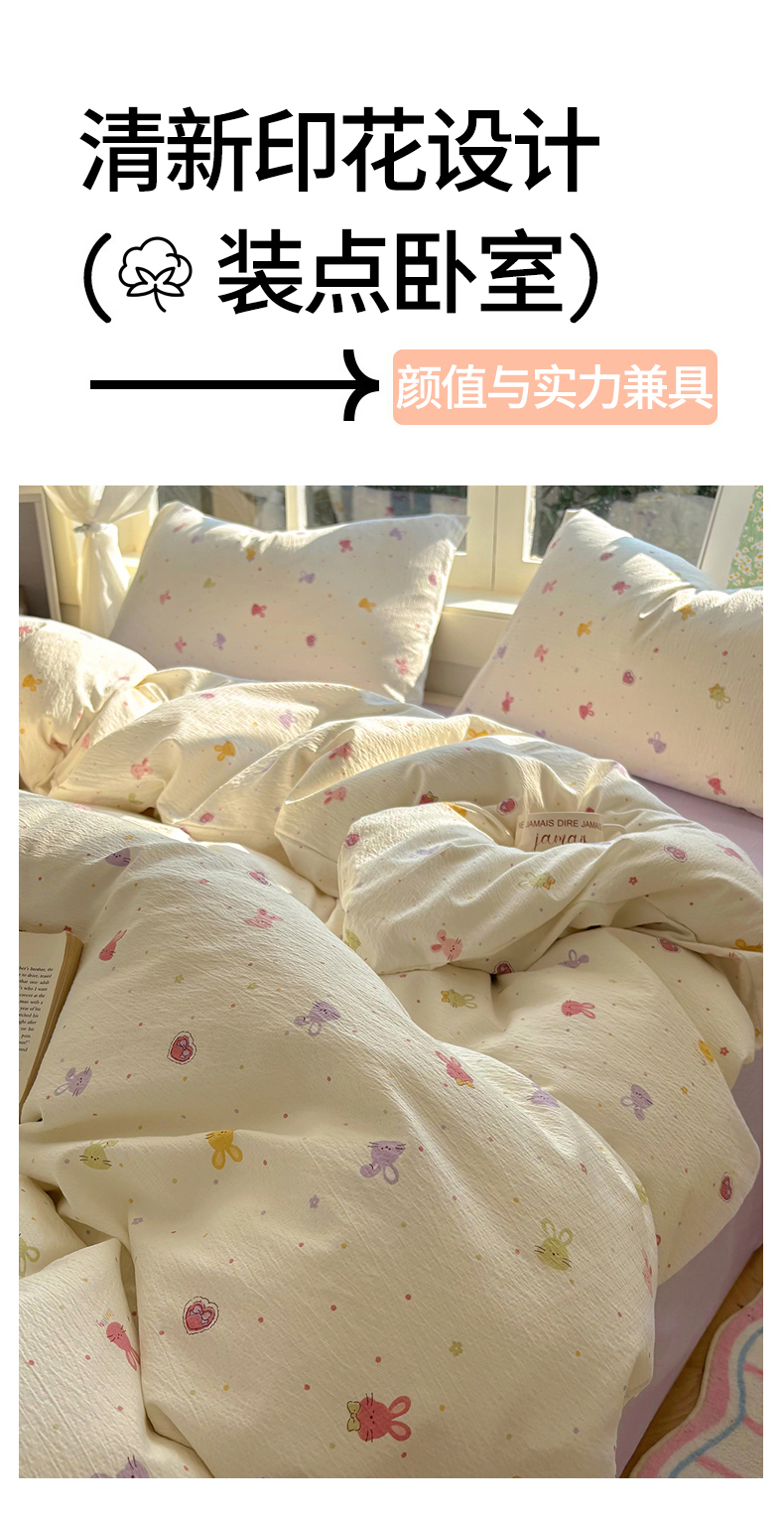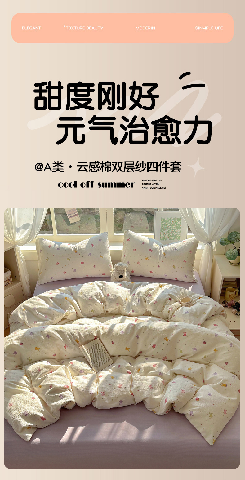 当前位置: 91家纺网 > 商品网购 > 床品套件 > 四件套 > 双层纱四件套 > 耀达家居 2025新款木棉A类有氧双层纱四件套小清新碎花床单宿舍三件套 蜜豆