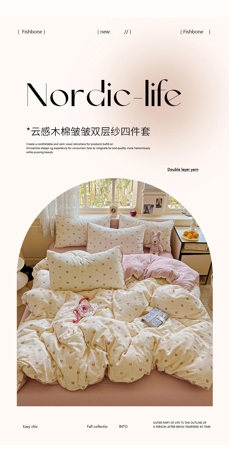 当前位置: 91家纺网 > 商品网购 > 床品套件 > 四件套 > 双层纱四件套 > 典曼家纺 2025新款云感皱皱双层纱四件套-简单款 花园兔