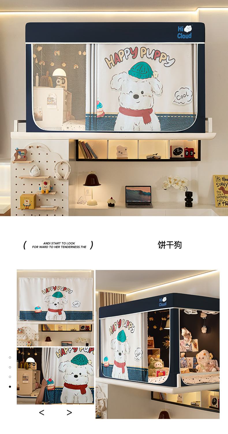 • 91家纺网 家纺一手货源 找家纺 艺利轩蚊帐 2025新款升级静电植绒环保强遮光床帘款学生上下铺蚊帐 饼干狗