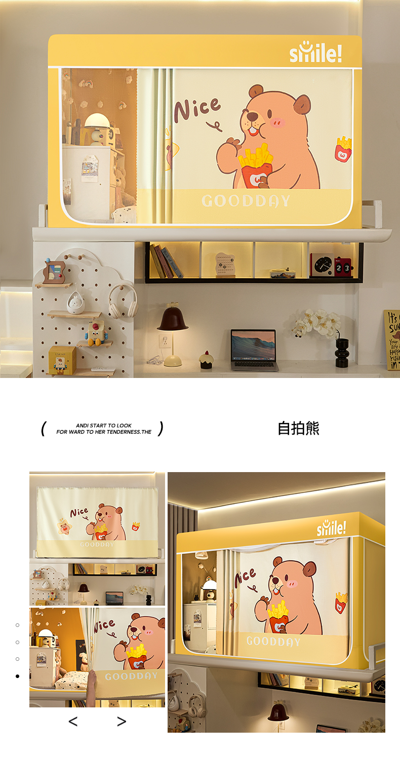 (总)艺利轩蚊帐 2025新款升级静电植绒环保强遮光床帘款卡通学生上下铺蚊帐,嗨皮狗,欢乐生活,卡皮巴拉,可爱企鹅,奇趣兔,晚安熊