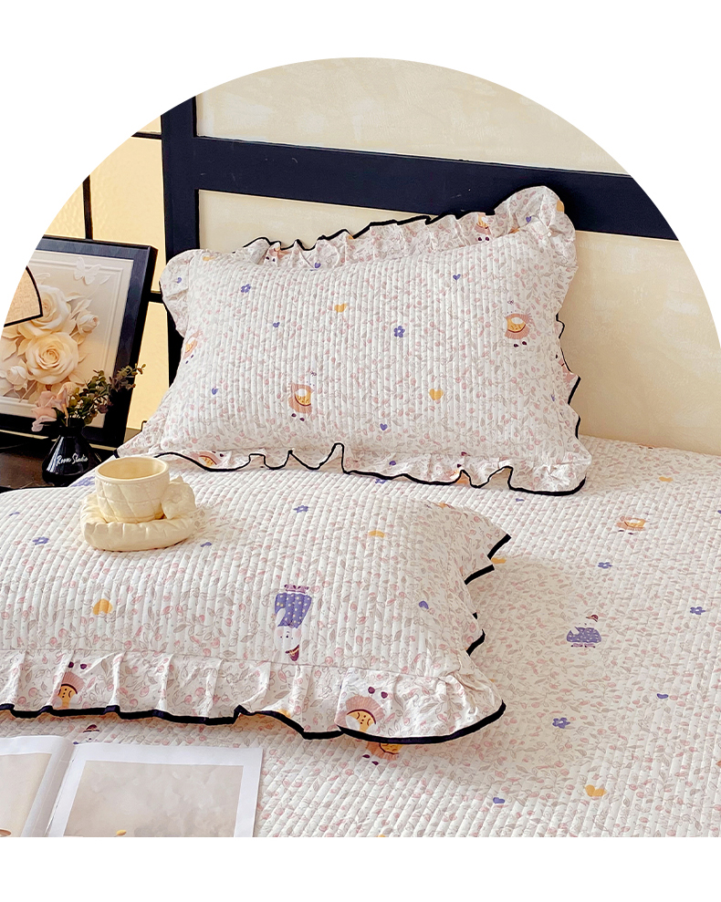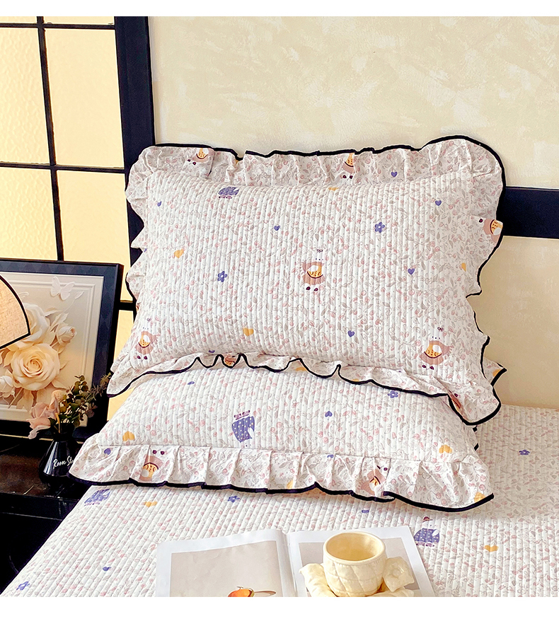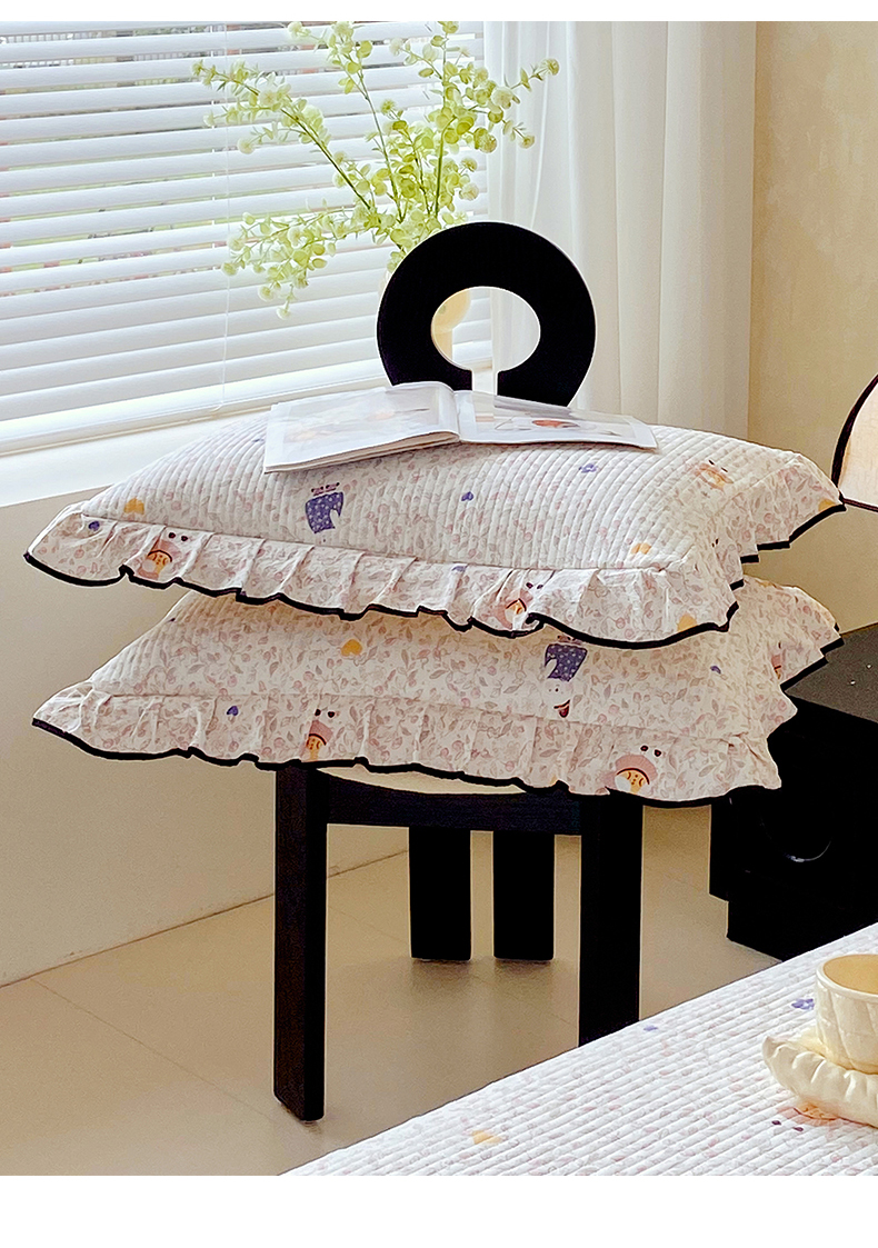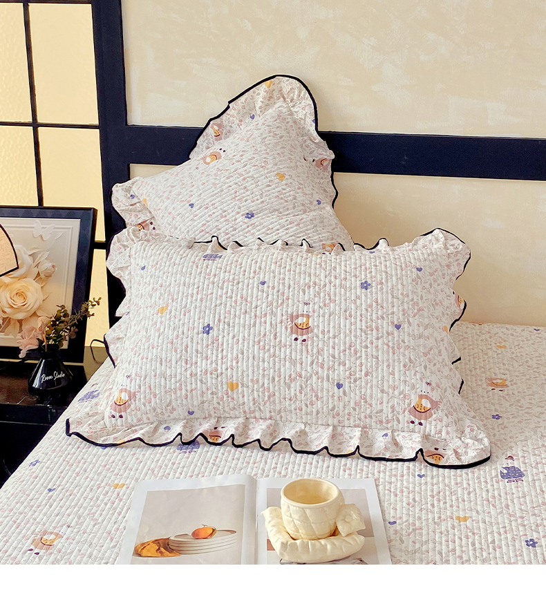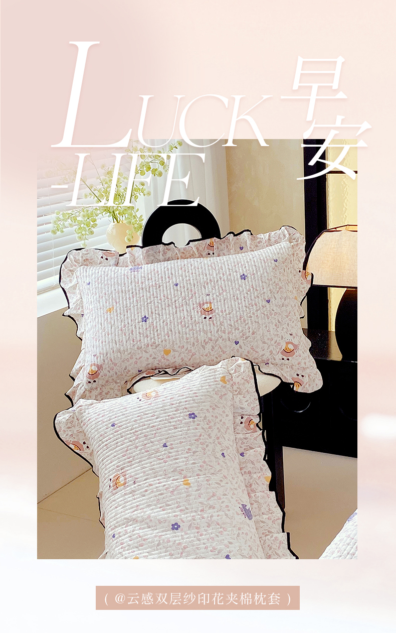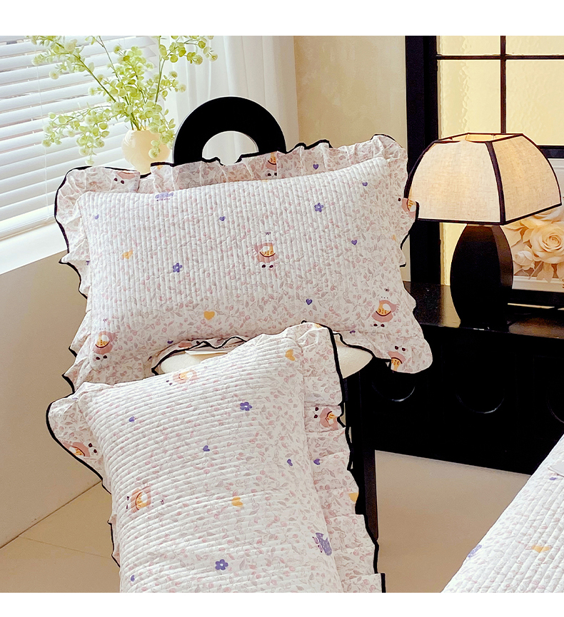商品名称:雨彤家纺 2025新款A类云感公主风双层纱印花夹棉花边款枕套 萌萌哒-公主风