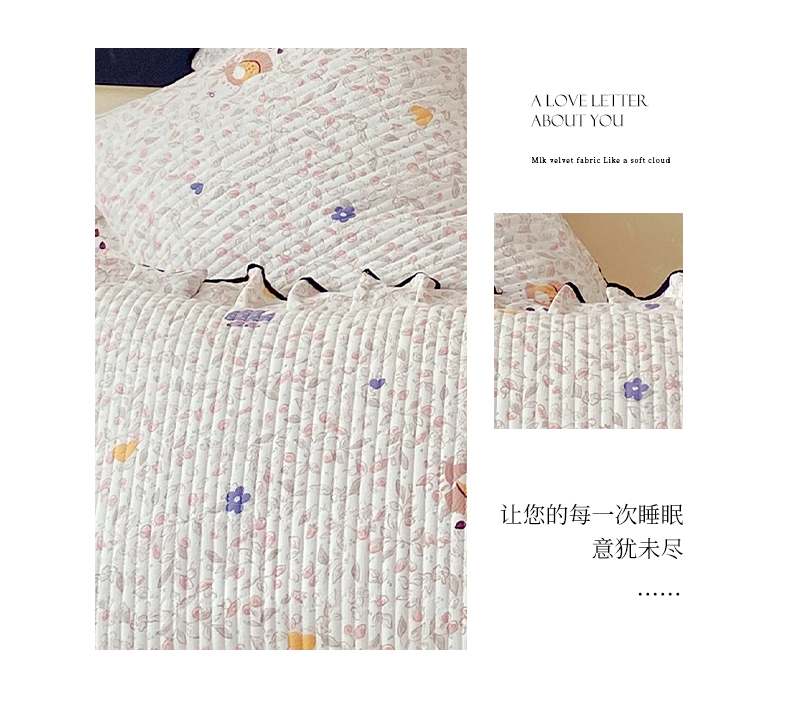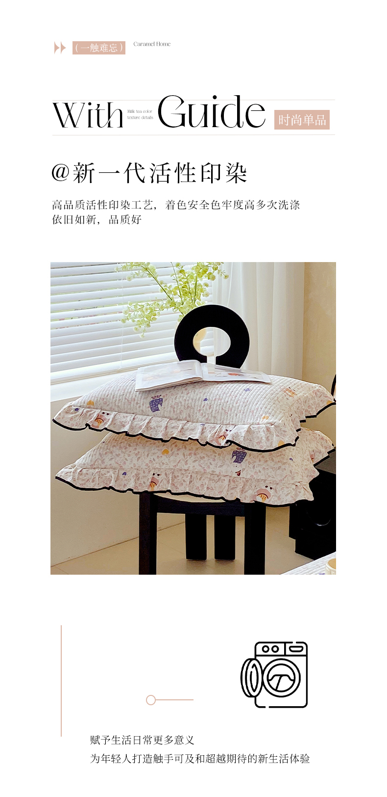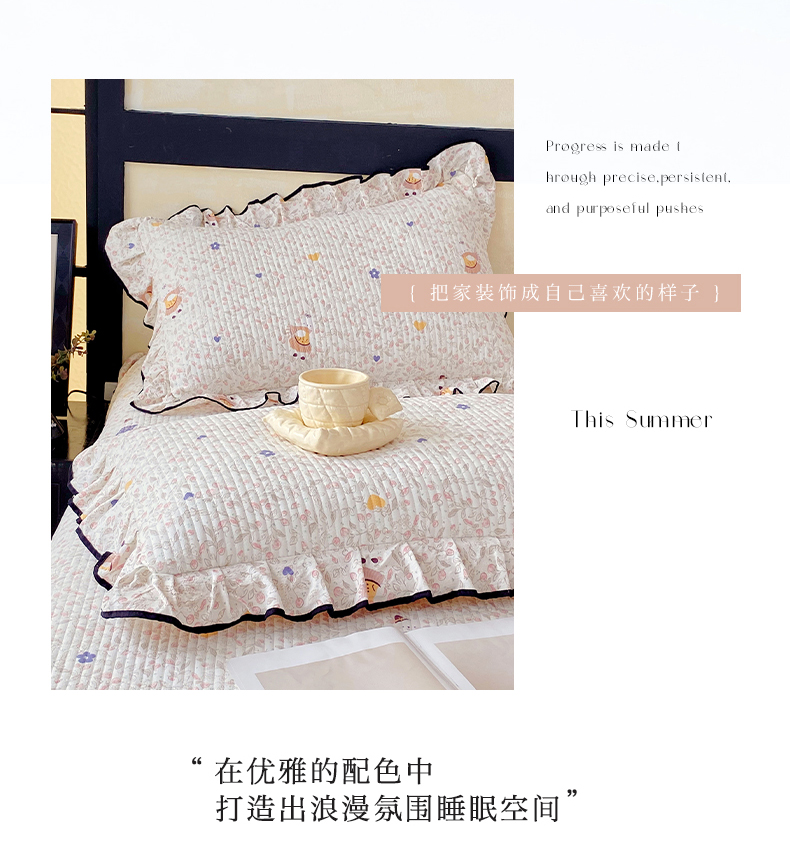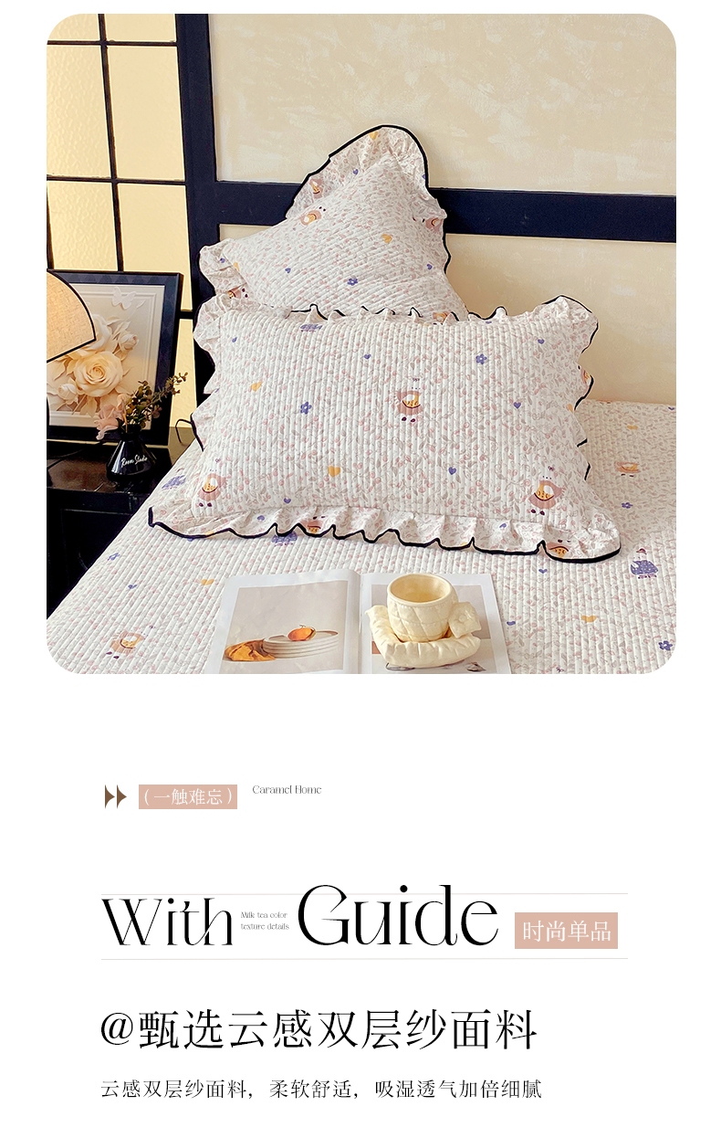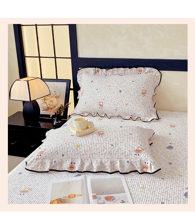 商品名称:雨彤家纺 2025新款A类云感公主风双层纱印花夹棉花边款枕套 萌萌哒-公主风