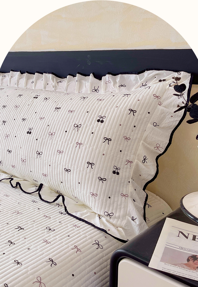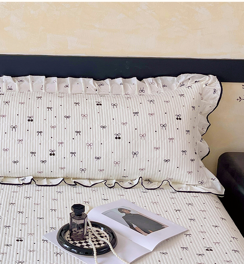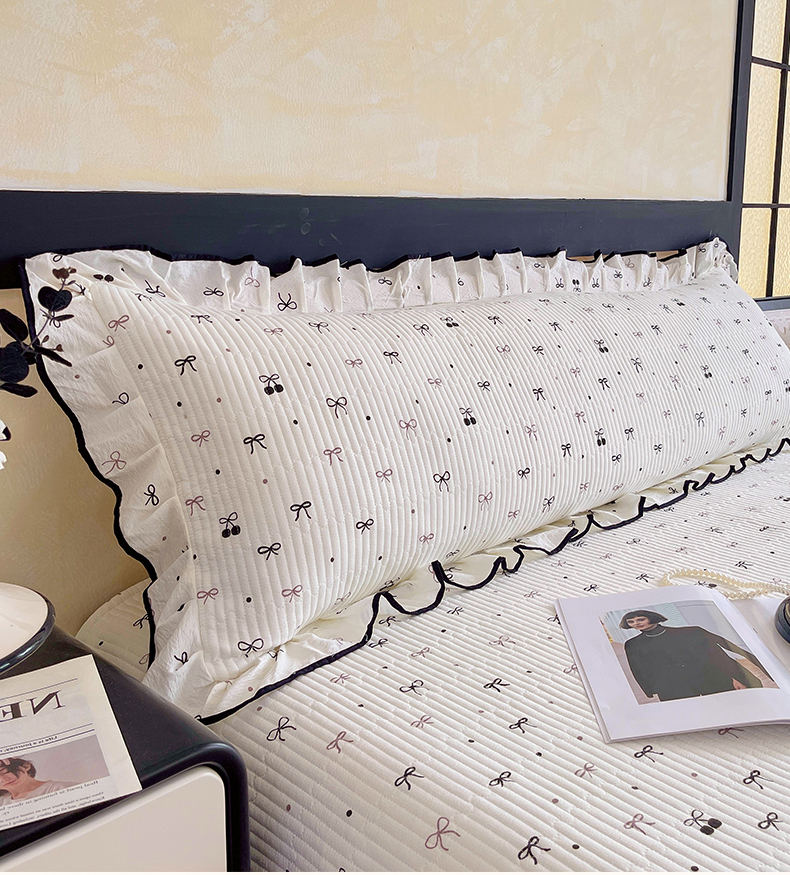 商品名称:雨彤家纺 2025新款A类公主风云感双层纱夹棉加长花边款枕套 黑樱梦境-公主风