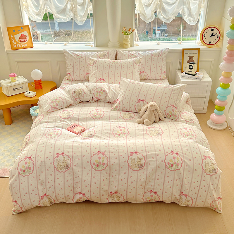 (总)希诺家居 2025新款纯棉洛丽塔风花边韩版萝莉风奶油风可爱卡通全棉四件套,爱丽丝,春日出逃,告白序曲