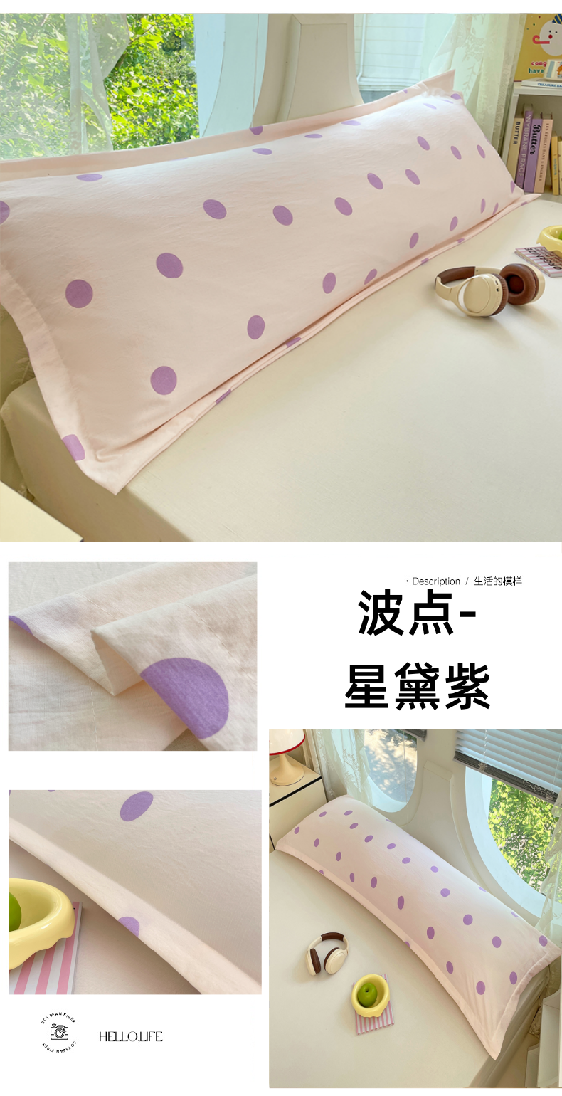 商品名称:梦舒羽 2025新款双层纱双人枕套情侣学生长枕芯套枕头内胆套-缤纷波点 波点-星黛紫