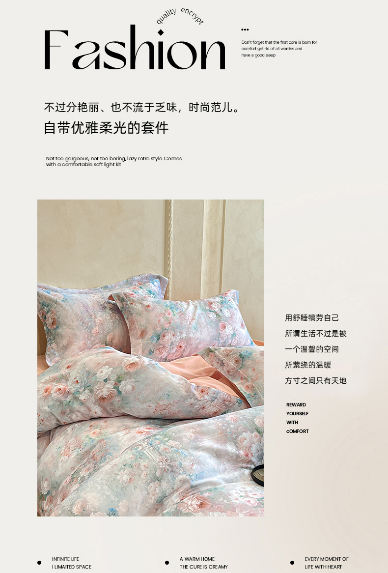 当前位置: 91家纺网 > 商品网购 > 床品套件 > 四件套 > 全棉普通四件套 > 禾时 2025新款全棉超柔数码印花磨毛四件套(32x21磨毛) 倾城花恋(粉)