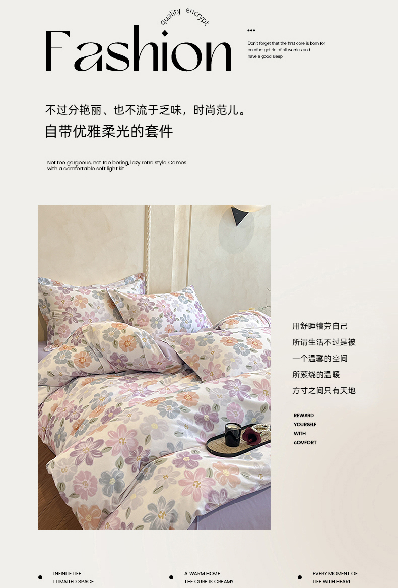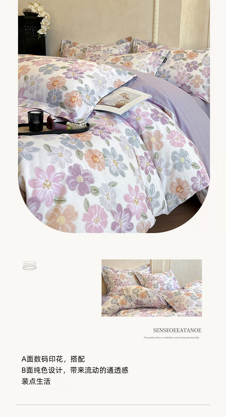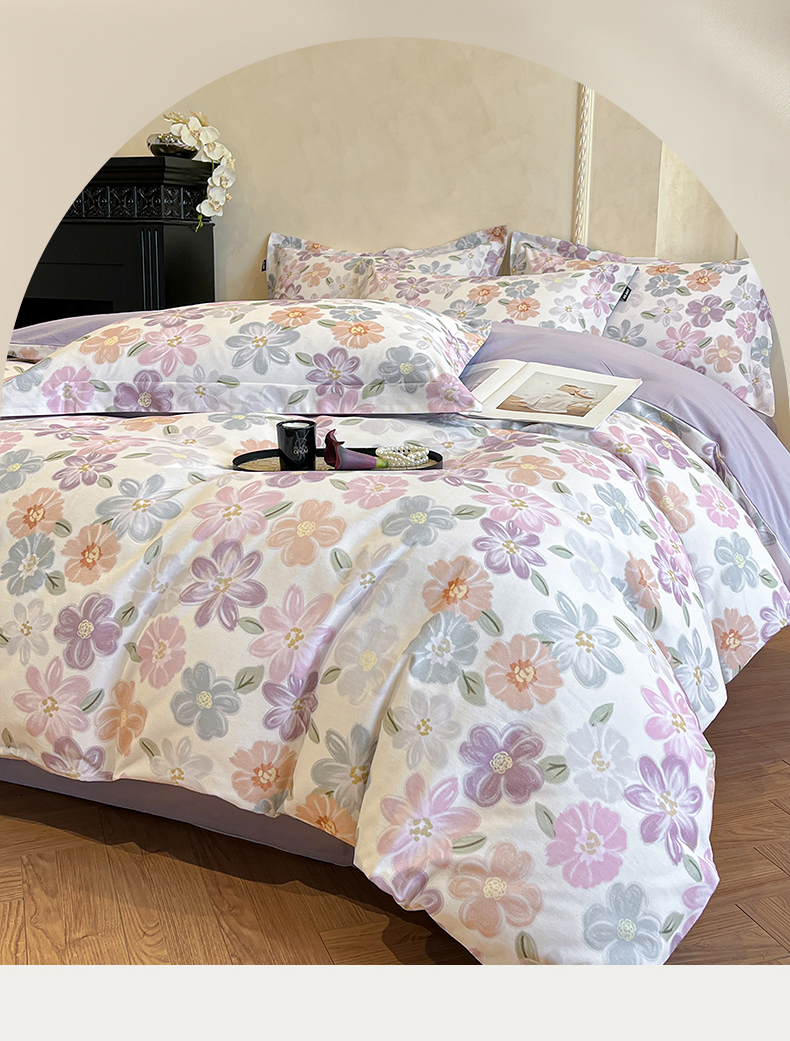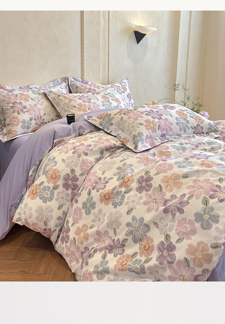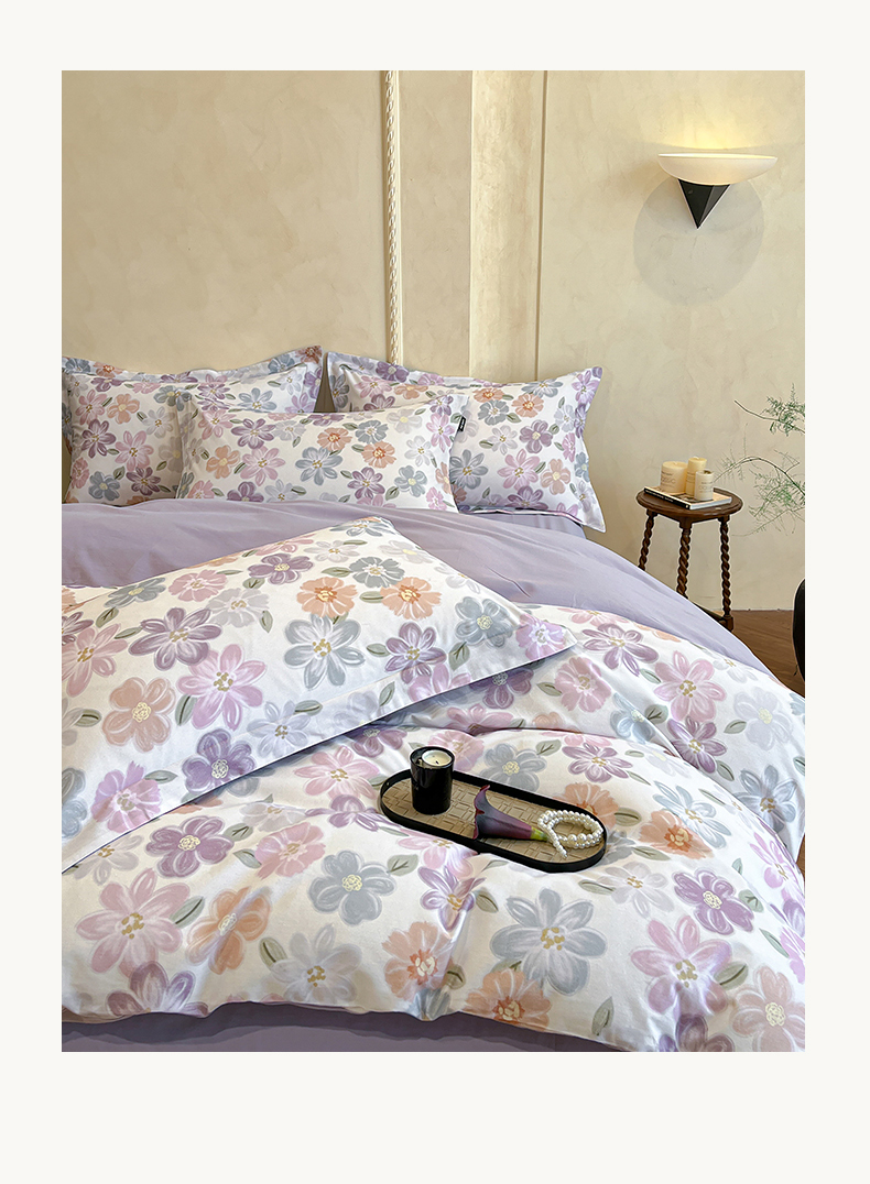 当前位置: 91家纺网 > 商品网购 > 床品套件 > 四件套 > 全棉普通四件套 > 禾时 2025新款全棉超柔数码印花磨毛四件套(32x21磨毛) 忆甜(米紫)