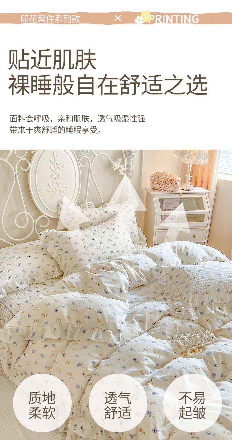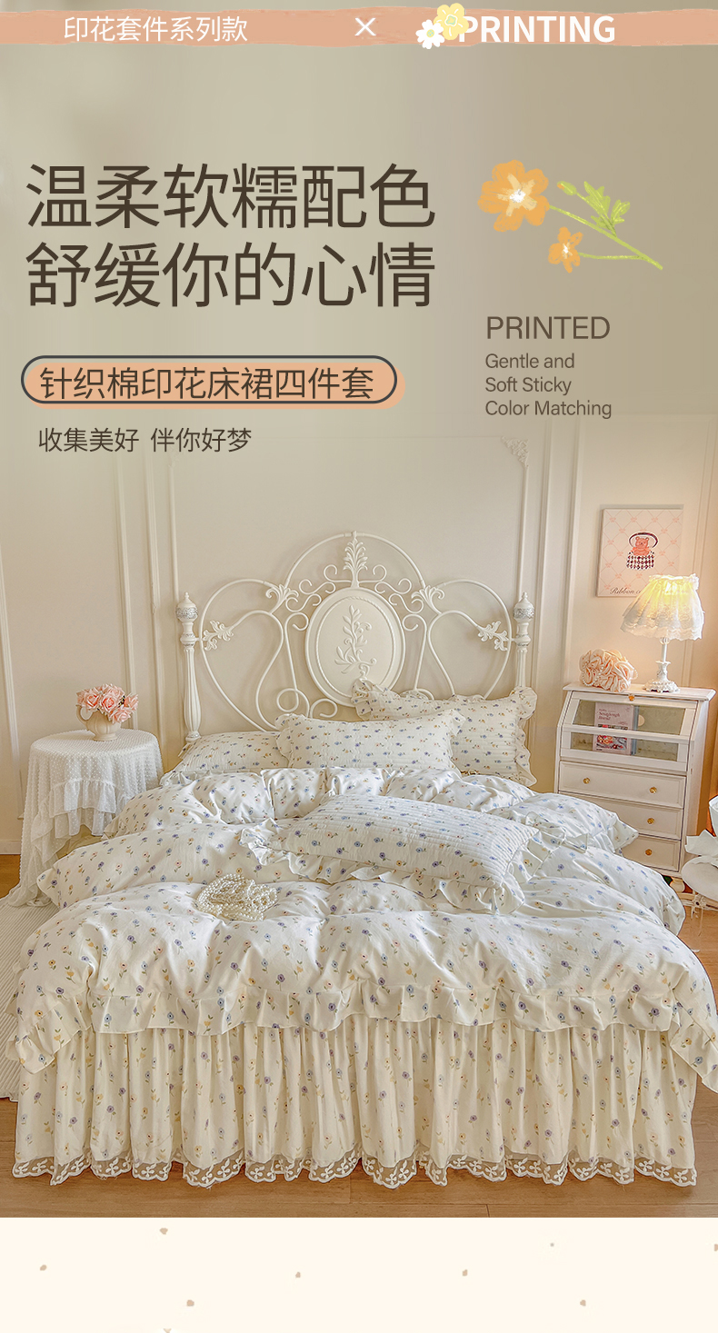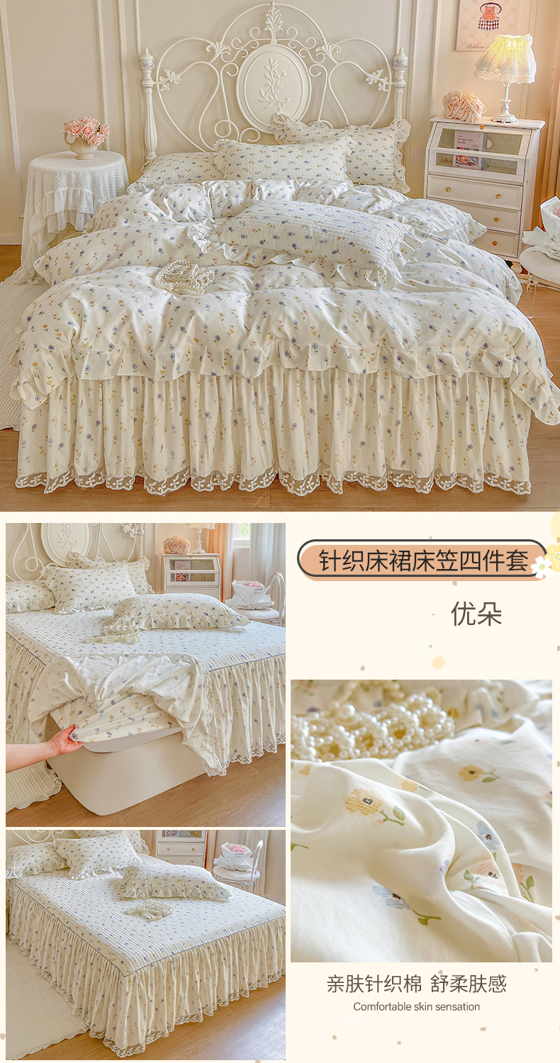 商品名称:网红馆(ck家纺)2025新款针织印花床裙四件套 优朵