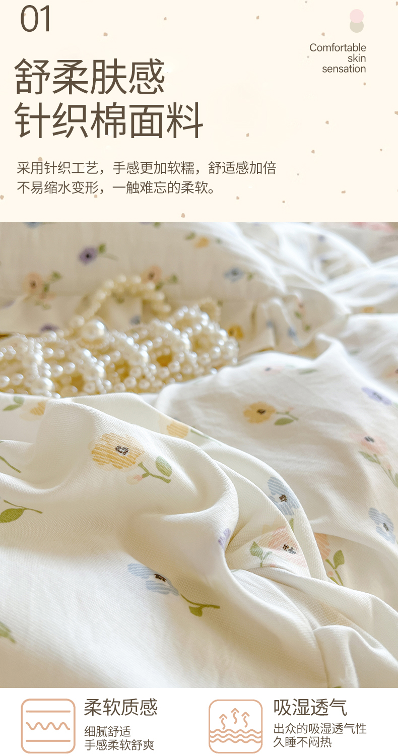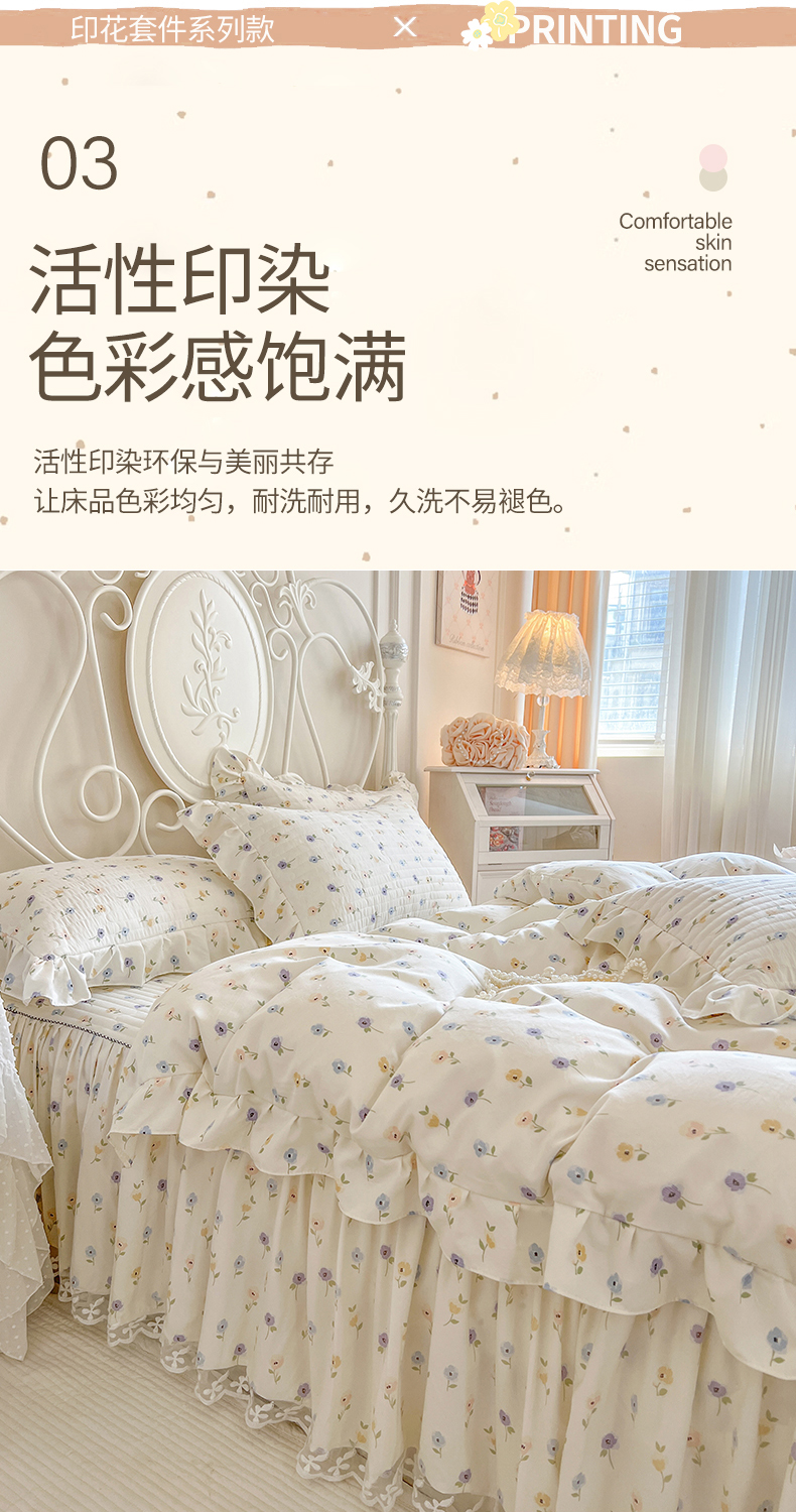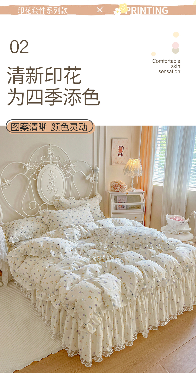 商品名称:网红馆(ck家纺)2025新款针织印花床裙四件套 优朵