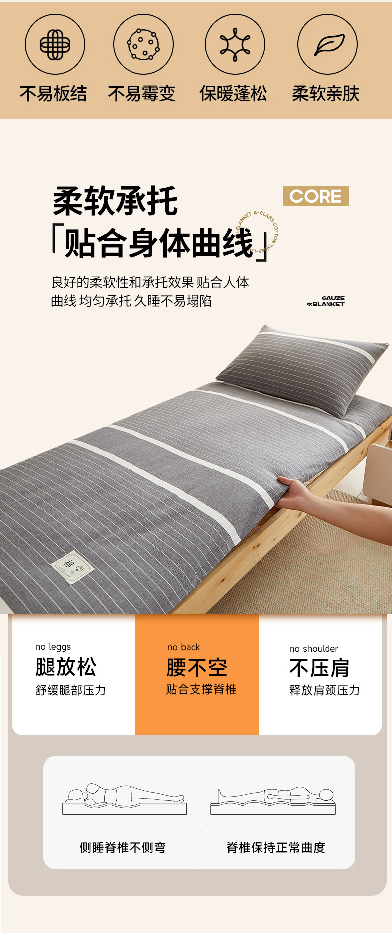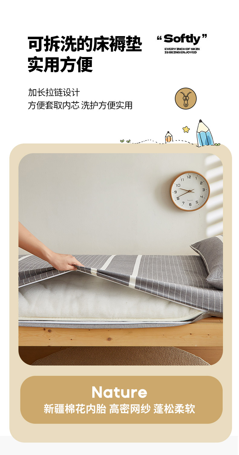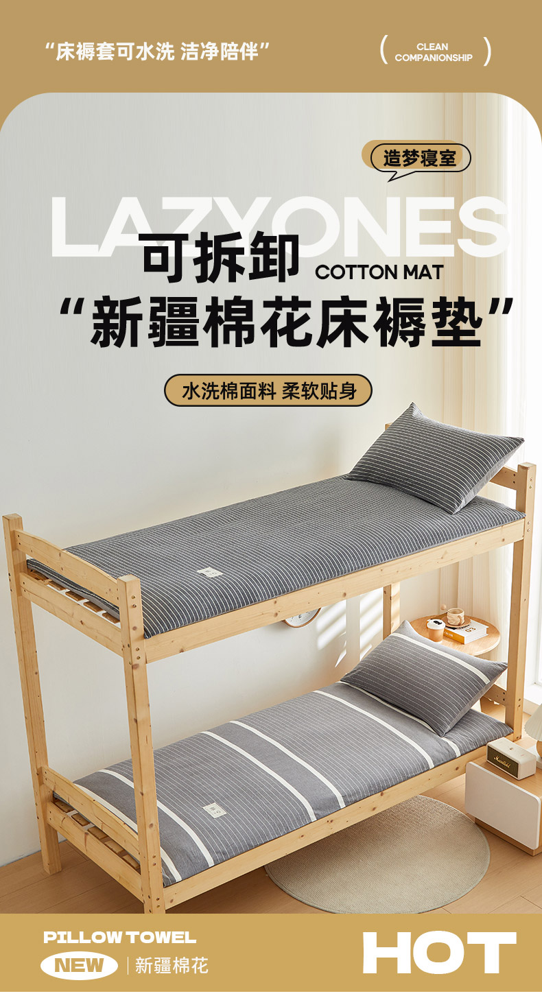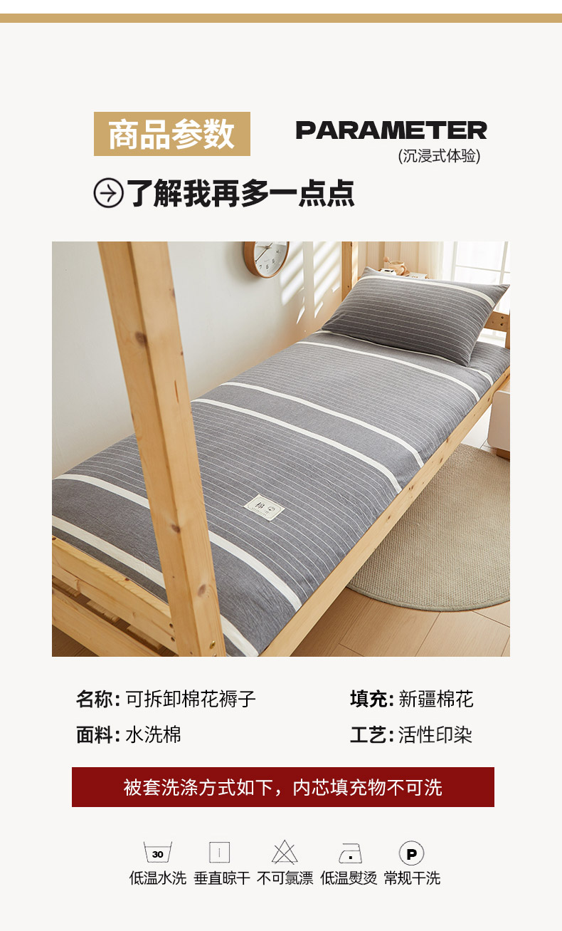 当前位置: 91家纺网 > 商品网购 > 床垫/床褥 > 普通床垫 > 2024新款水洗棉可拆洗棉花学生床垫床褥垫褥子床垫 灰白条