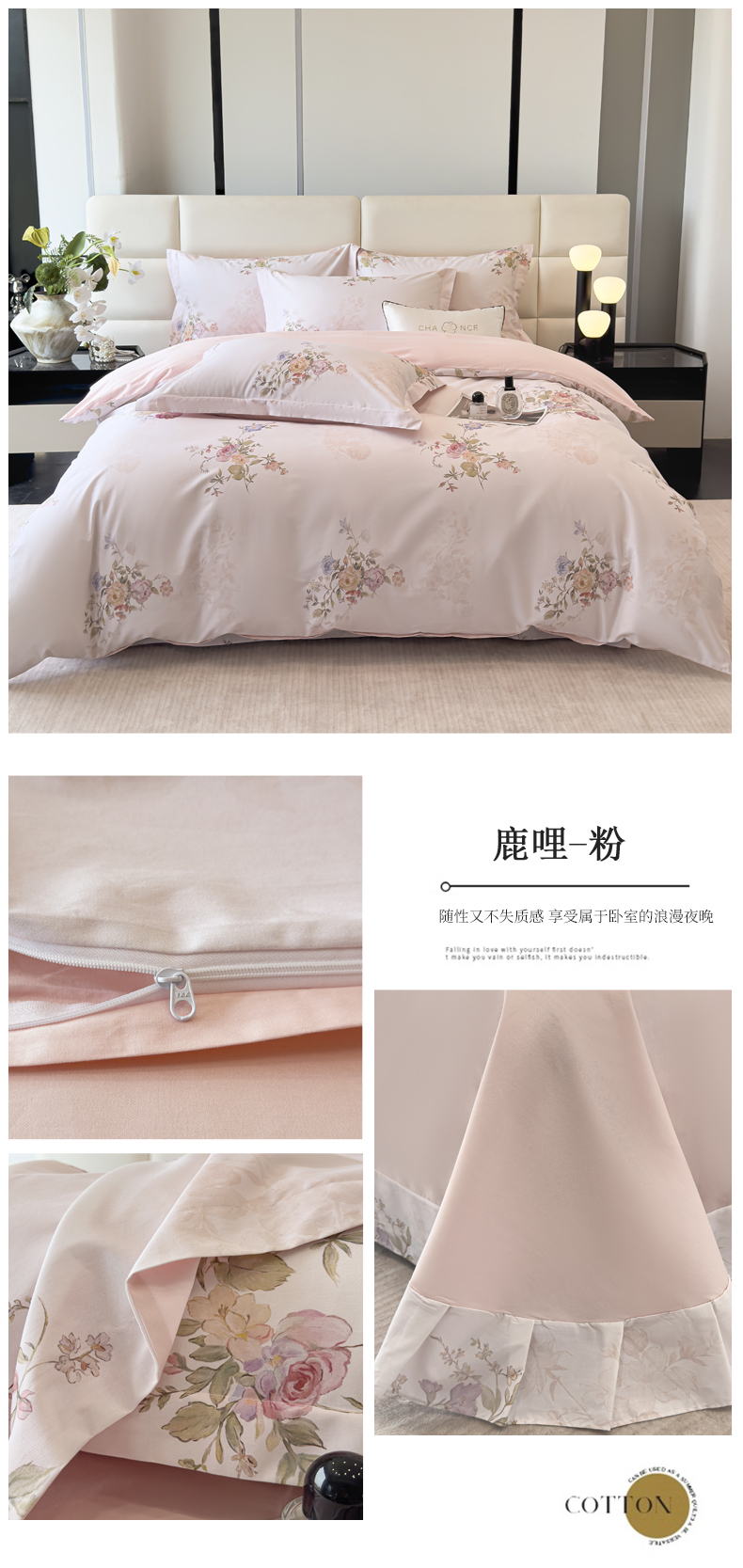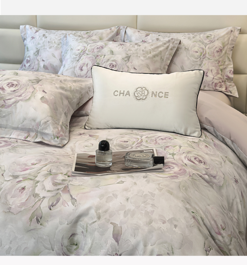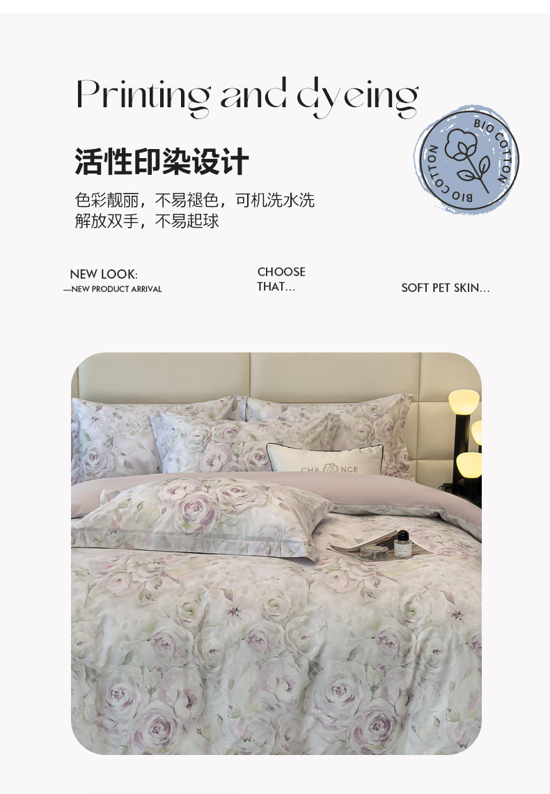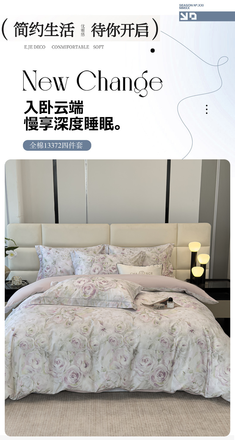 商品名称:洺兰家居 2025新款高支高密轻奢数码印花四件套长绒棉纯棉四件套 惜花芷