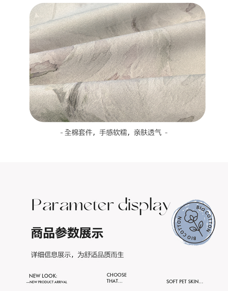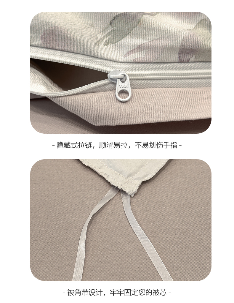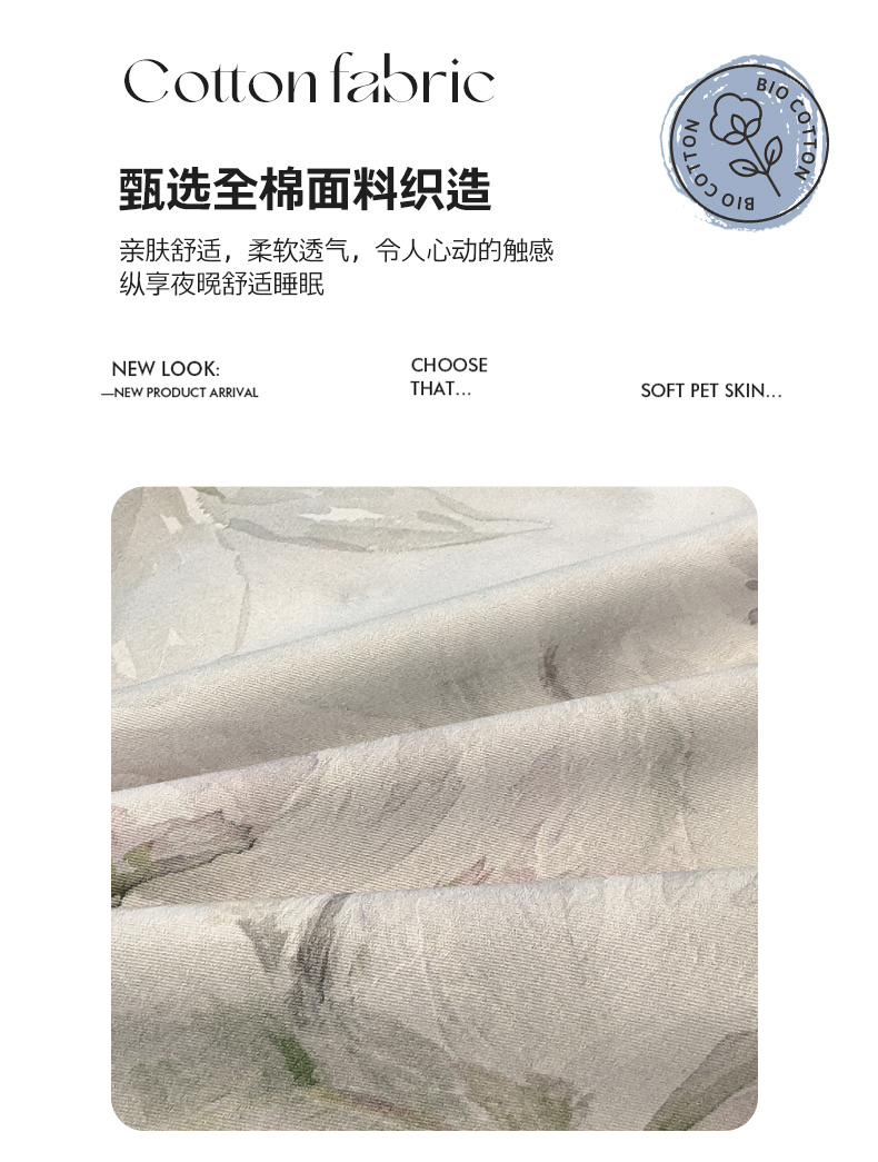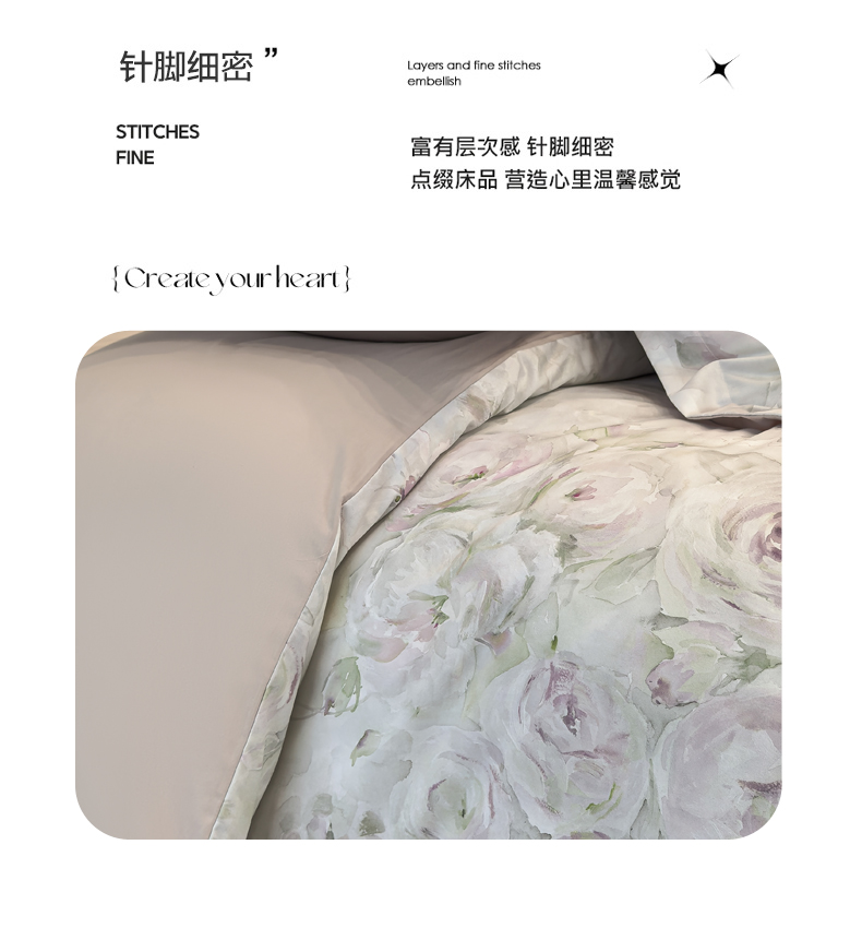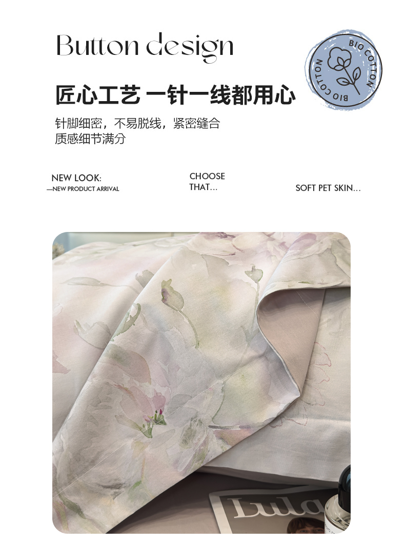 商品名称:洺兰家居 2025新款高支高密轻奢数码印花四件套长绒棉纯棉四件套 惜花芷