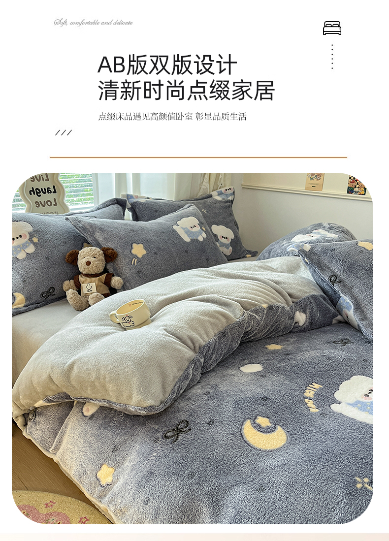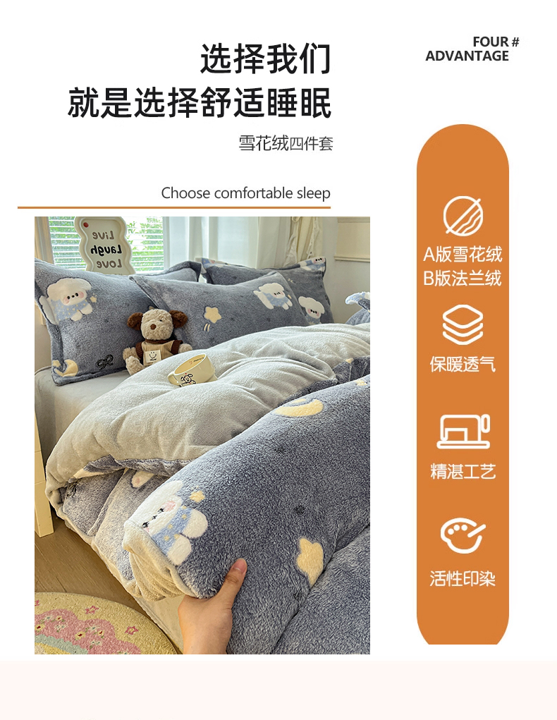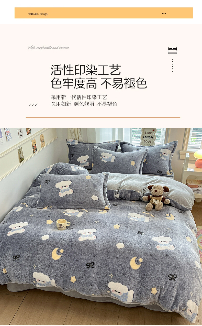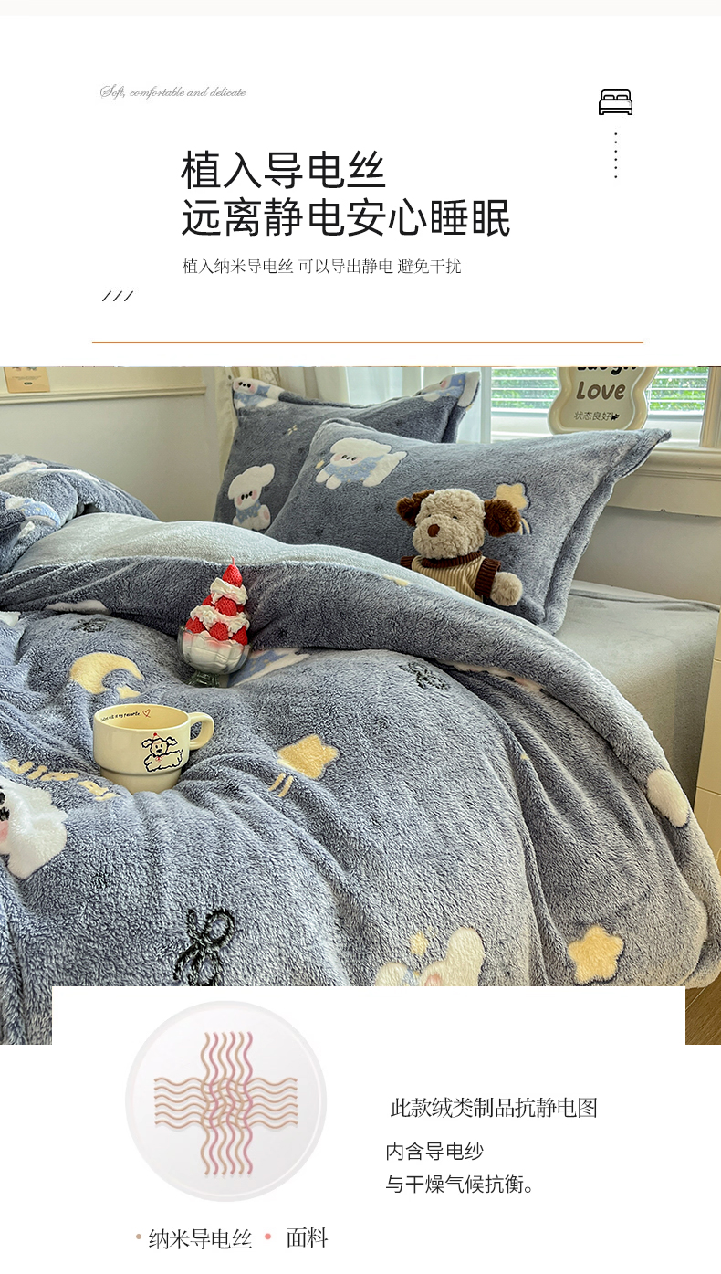 当前位置: 91家纺网 > 商品网购 > 床品套件 > 四件套 > 法莱绒四件套 > 川悦生活2025新款立体雪花绒印花大床四件套系列二场景二 星月小狗-灰