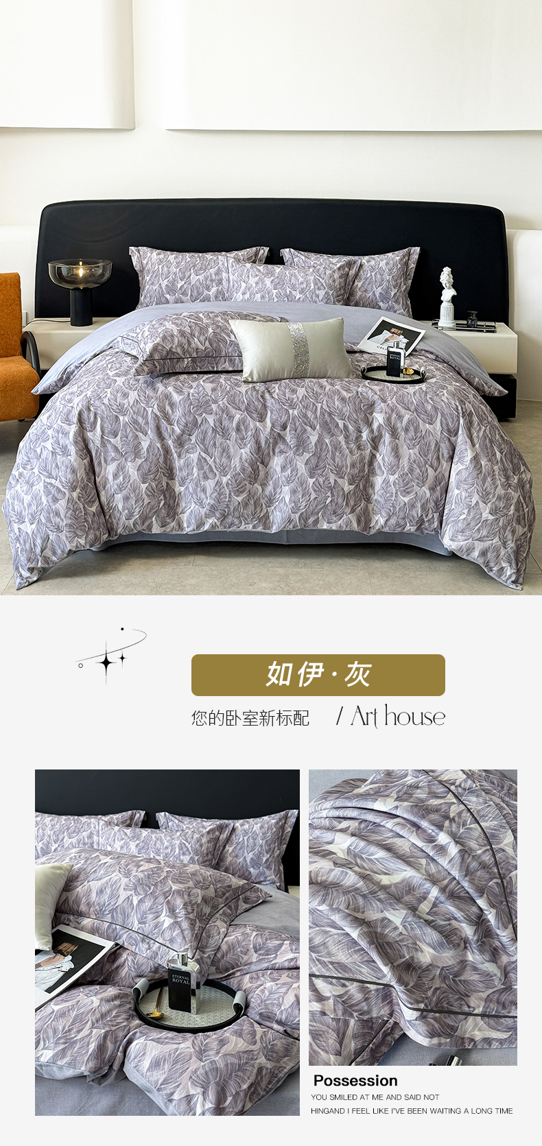 当前位置: 91家纺网 > 商品网购 > 床品套件 > 四件套 > 普通磨毛四件套 > 清雅福2025新款A类全棉磨毛数码印花四件套 如伊·灰