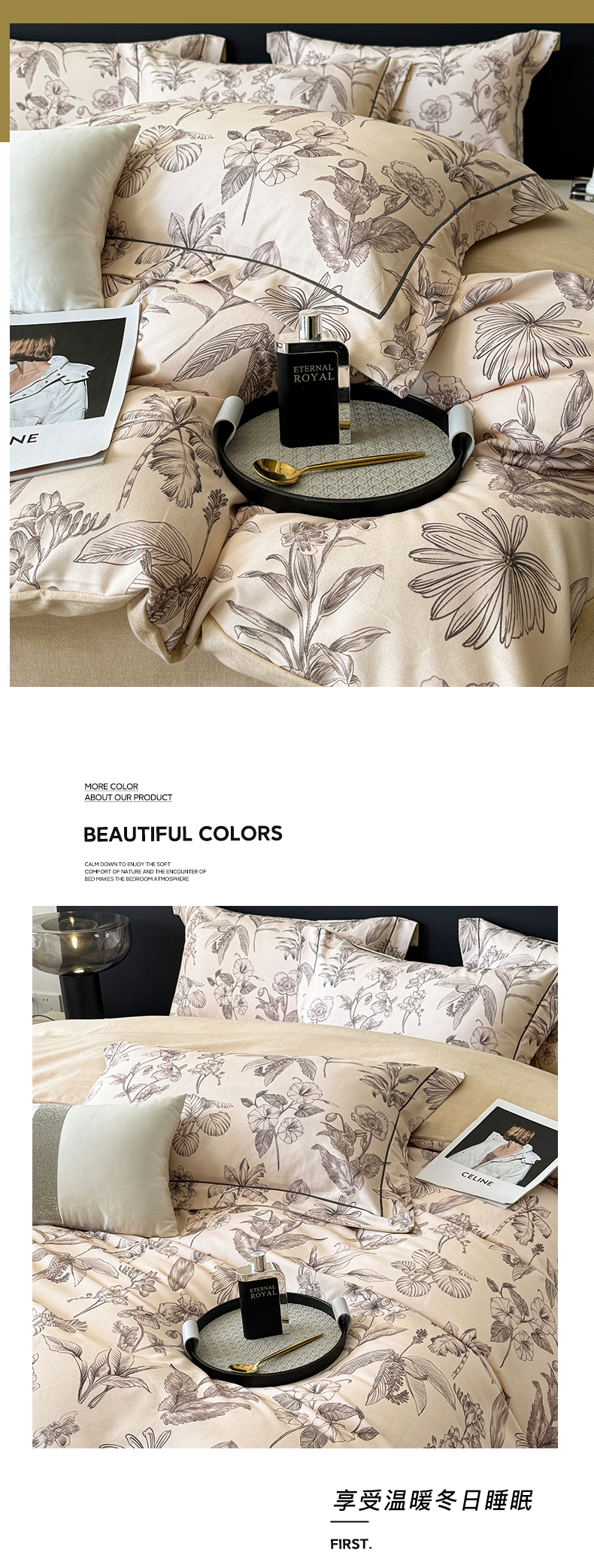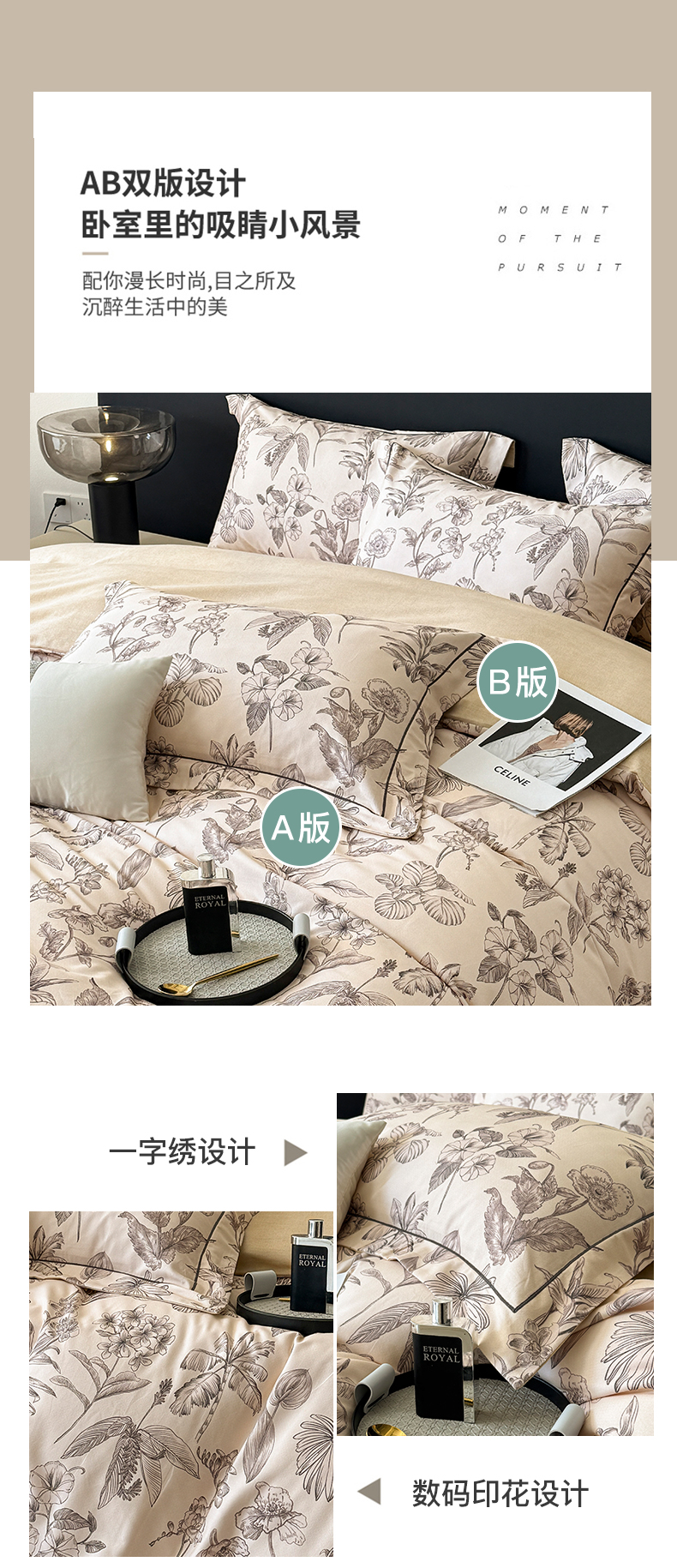 当前位置: 91家纺网 > 商品网购 > 床品套件 > 四件套 > 普通磨毛四件套 > 清雅福2025新款A类全棉磨毛数码印花四件套 叶舒