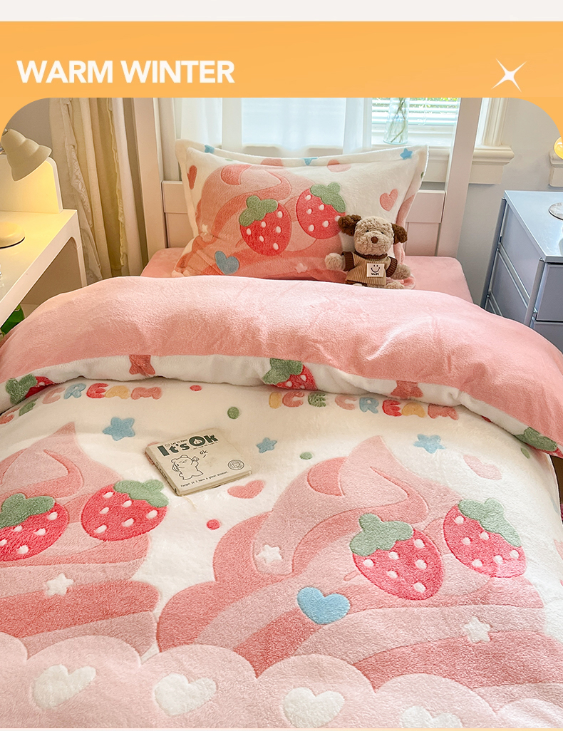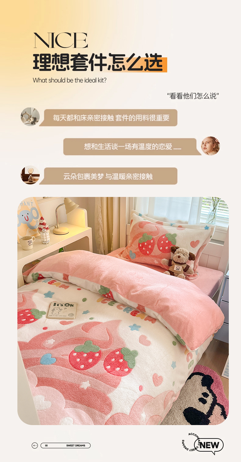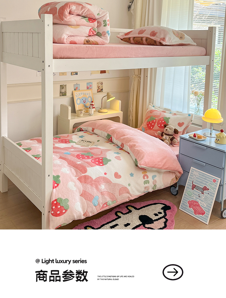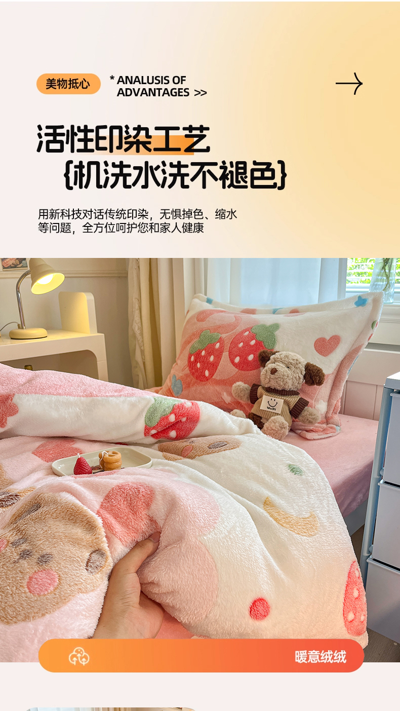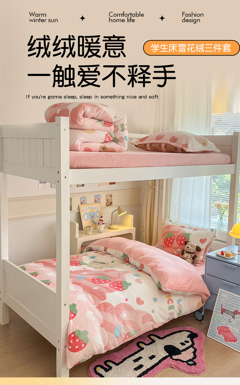 当前位置: 91家纺网 > 商品网购 > 床品套件 > 四件套 > 法莱绒四件套 > 川悦生活 2025新款立体雪花绒印花四件套学生床系列一场景二 冰激凌小熊