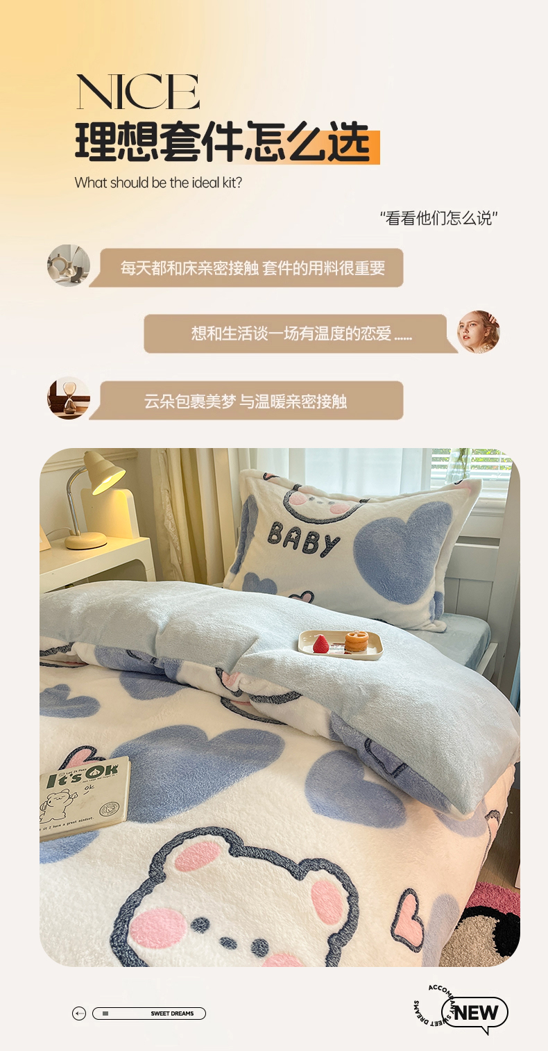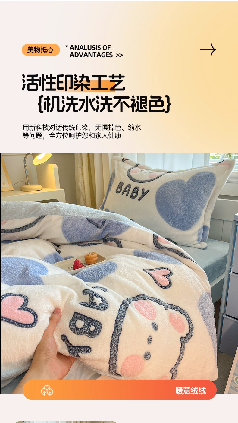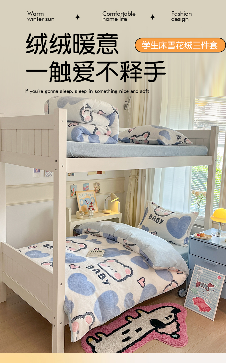 当前位置: 91家纺网 > 商品网购 > 床品套件 > 四件套 > 法莱绒四件套 > 川悦生活 2025新款立体雪花绒印花四件套学生床系列一场景二 可爱熊
