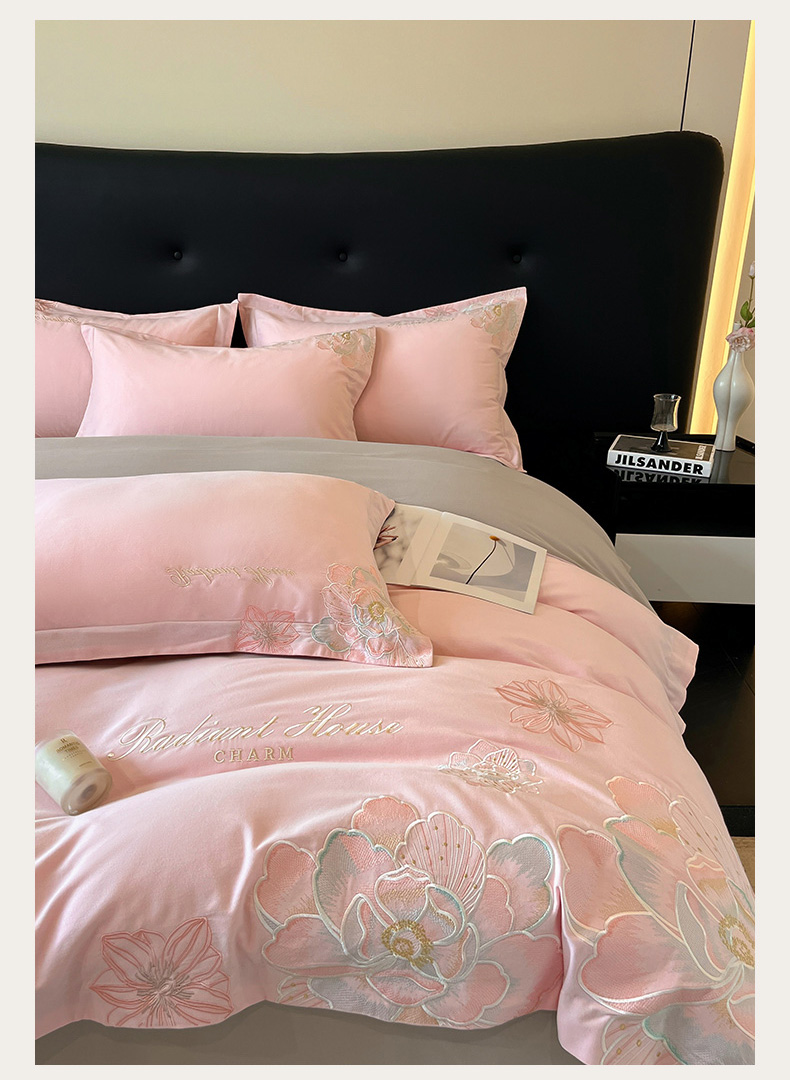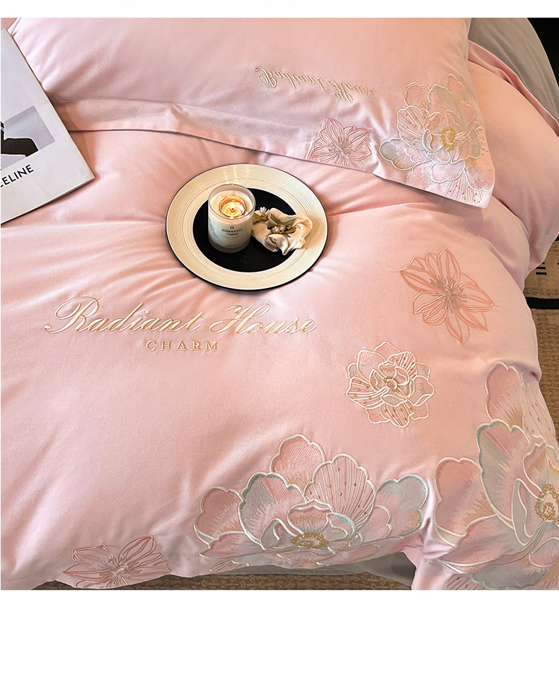 笙意家纺 2025新款A类全棉磨毛刺绣四件套-秘境系列 秘境-绯粉+陨石灰