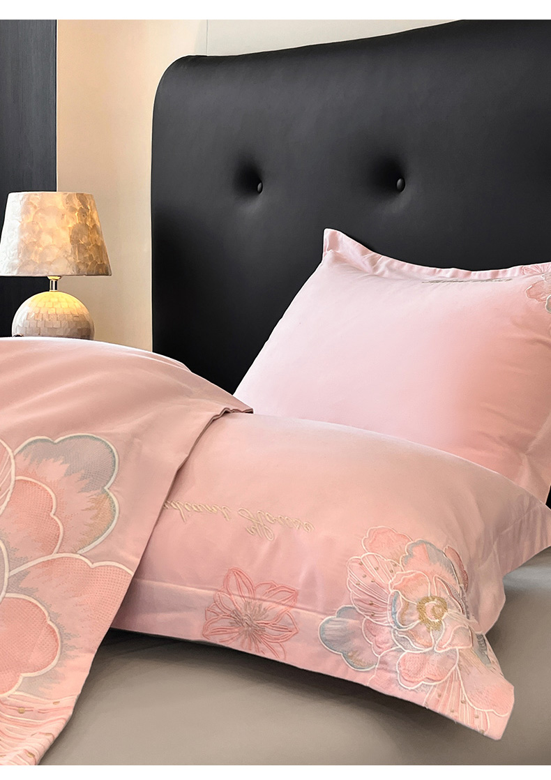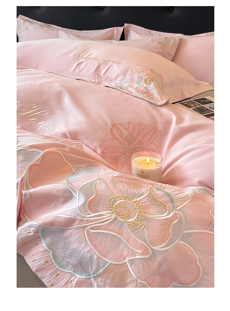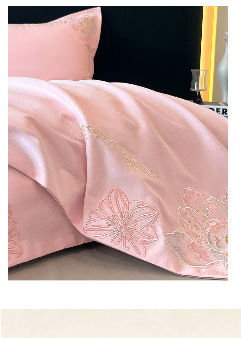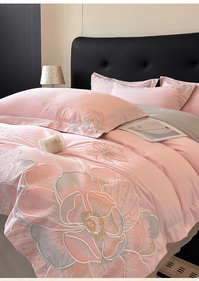 商品名称:笙意家纺 2025新款A类全棉磨毛刺绣四件套-秘境系列 秘境-绯粉+陨石灰
