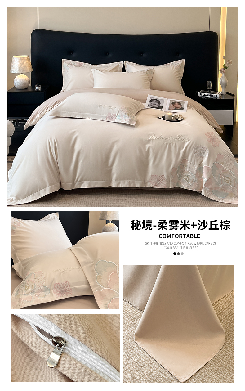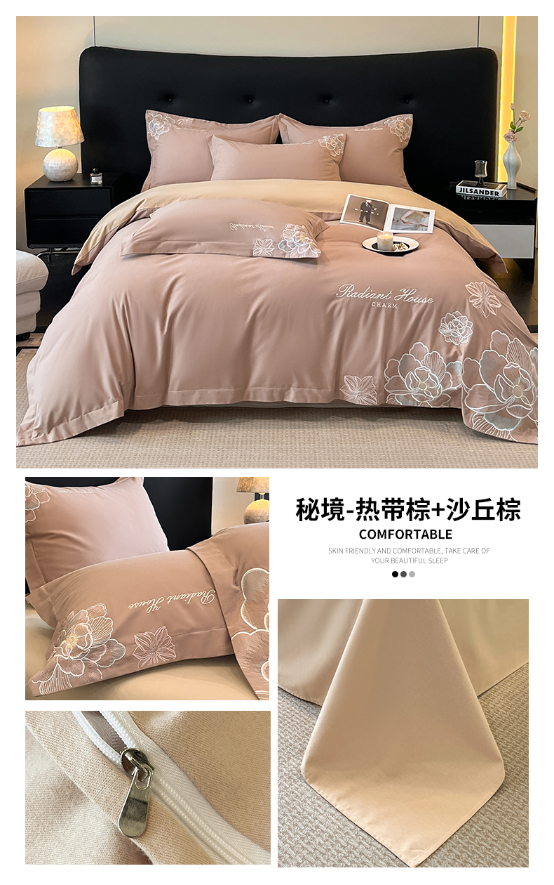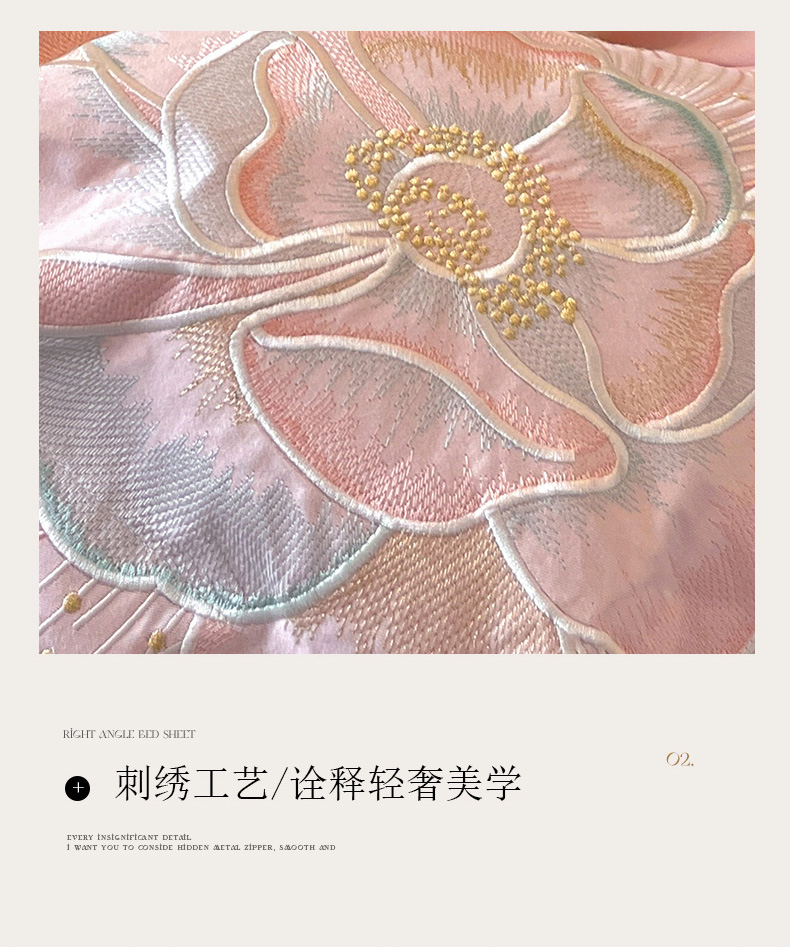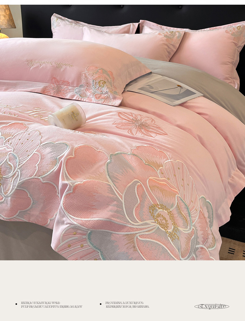 商品名称:笙意家纺 2025新款A类全棉磨毛刺绣四件套-秘境系列 秘境-绯粉+陨石灰