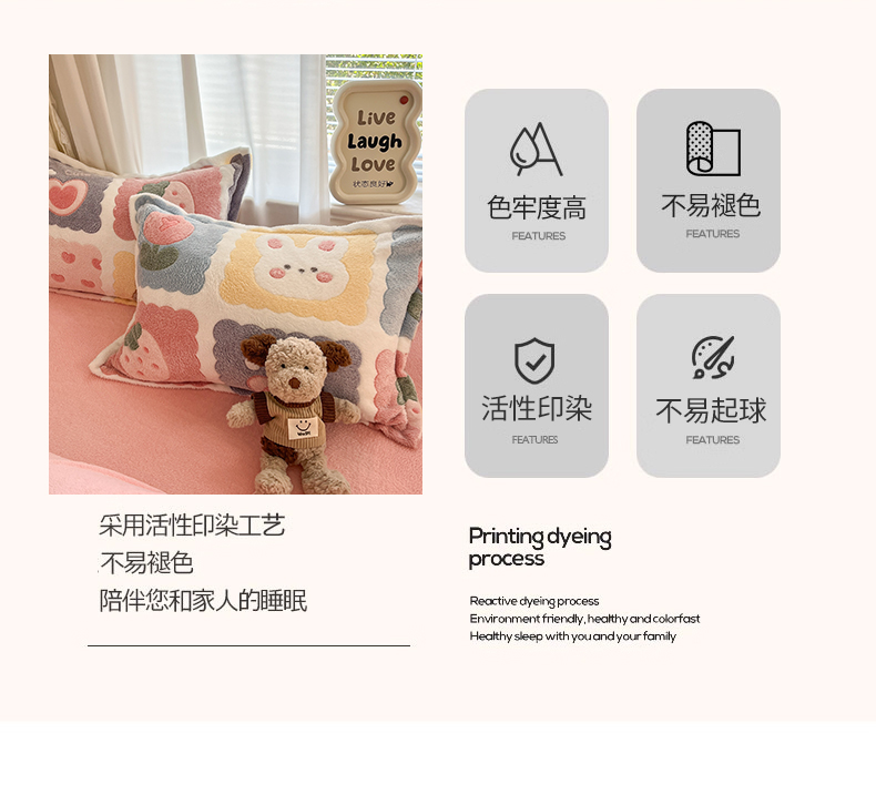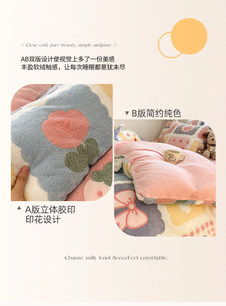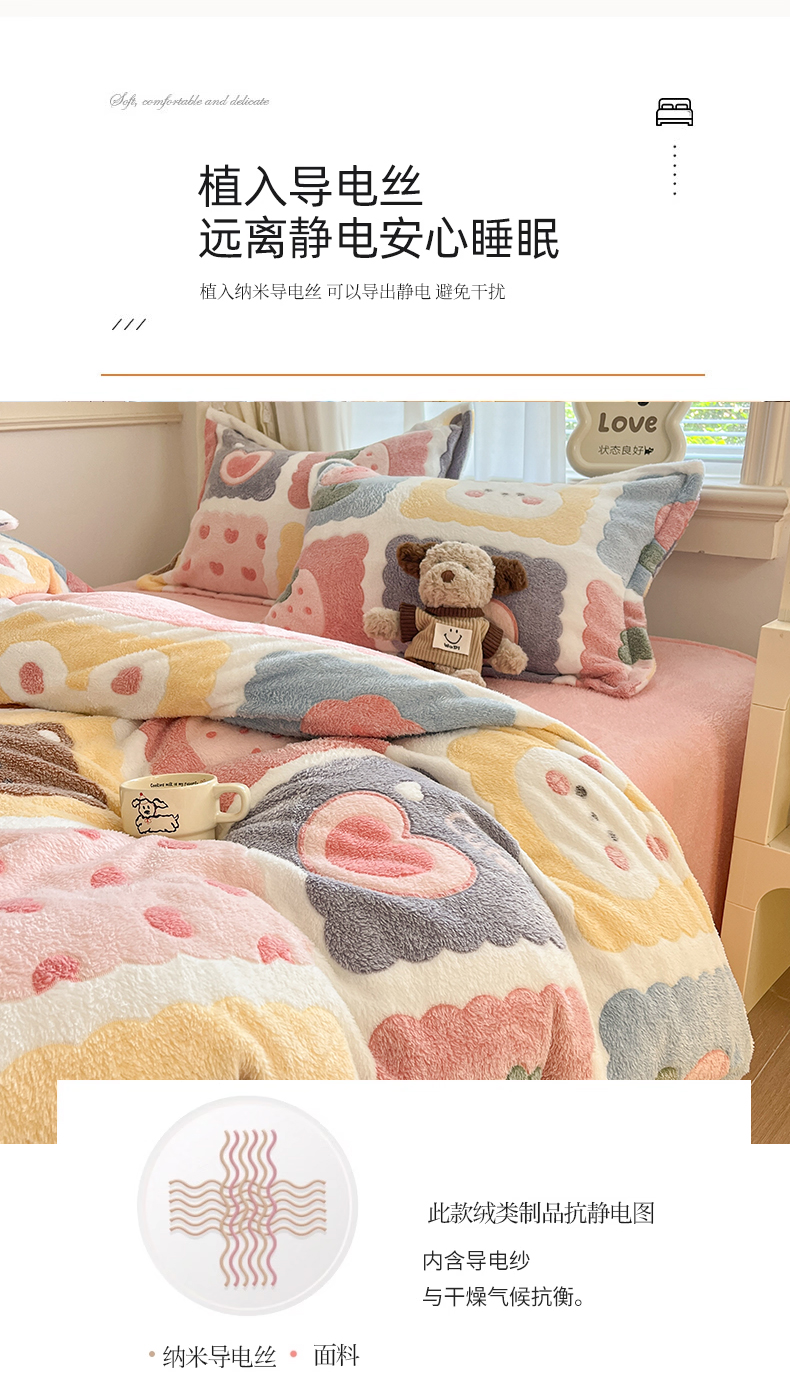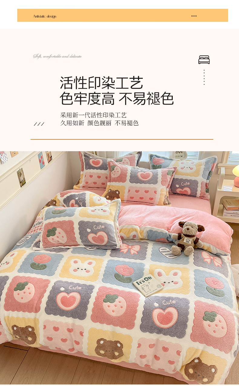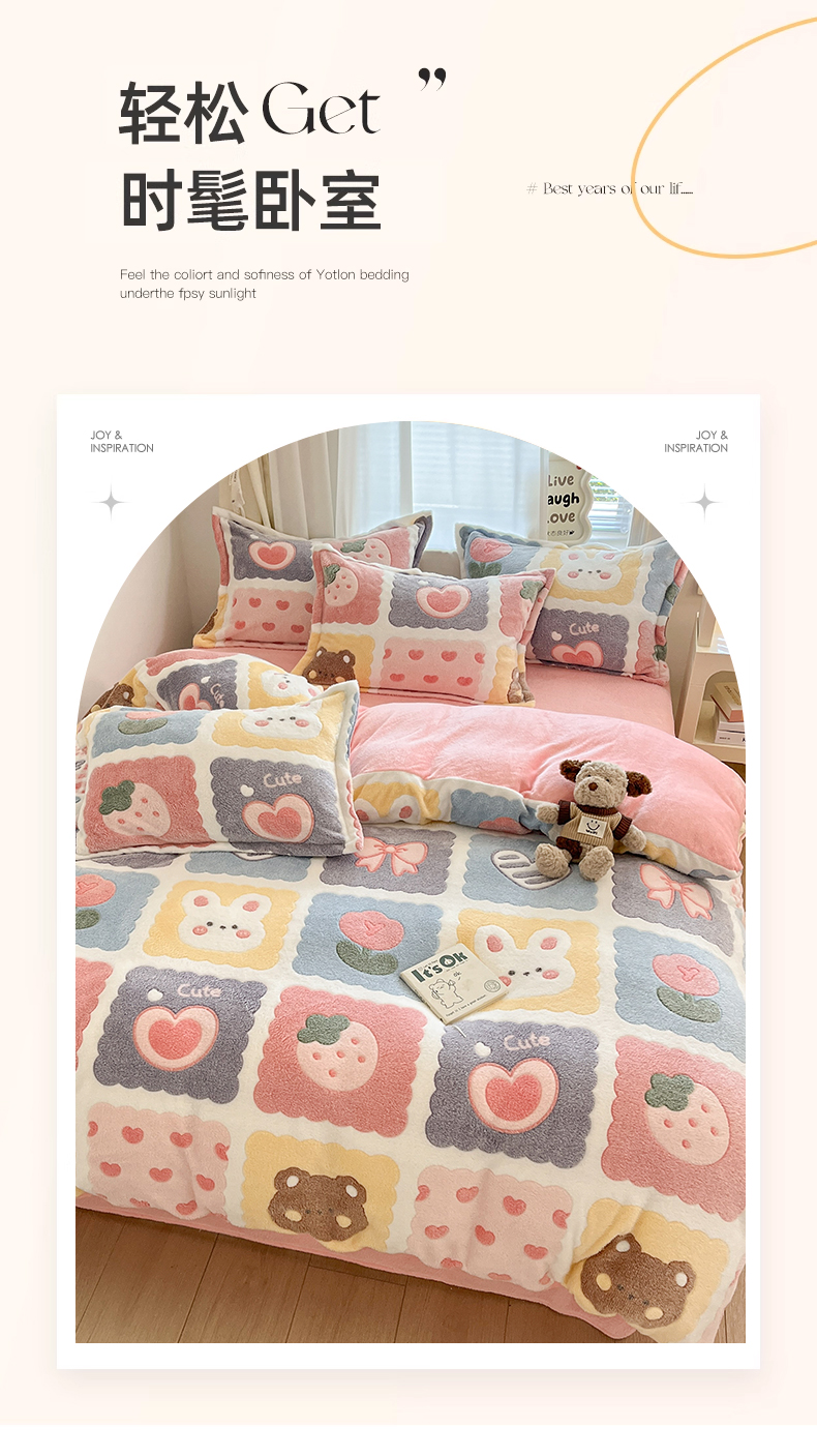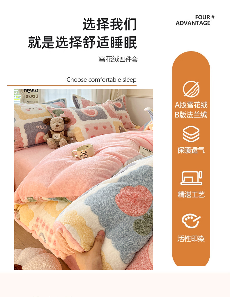 当前位置: 91家纺网 > 商品网购 > 床品套件 > 四件套 > 法莱绒四件套 > 川悦生活 2025新款立体雪花绒印花大床四件套系列一场景二 甜蜜日常粉