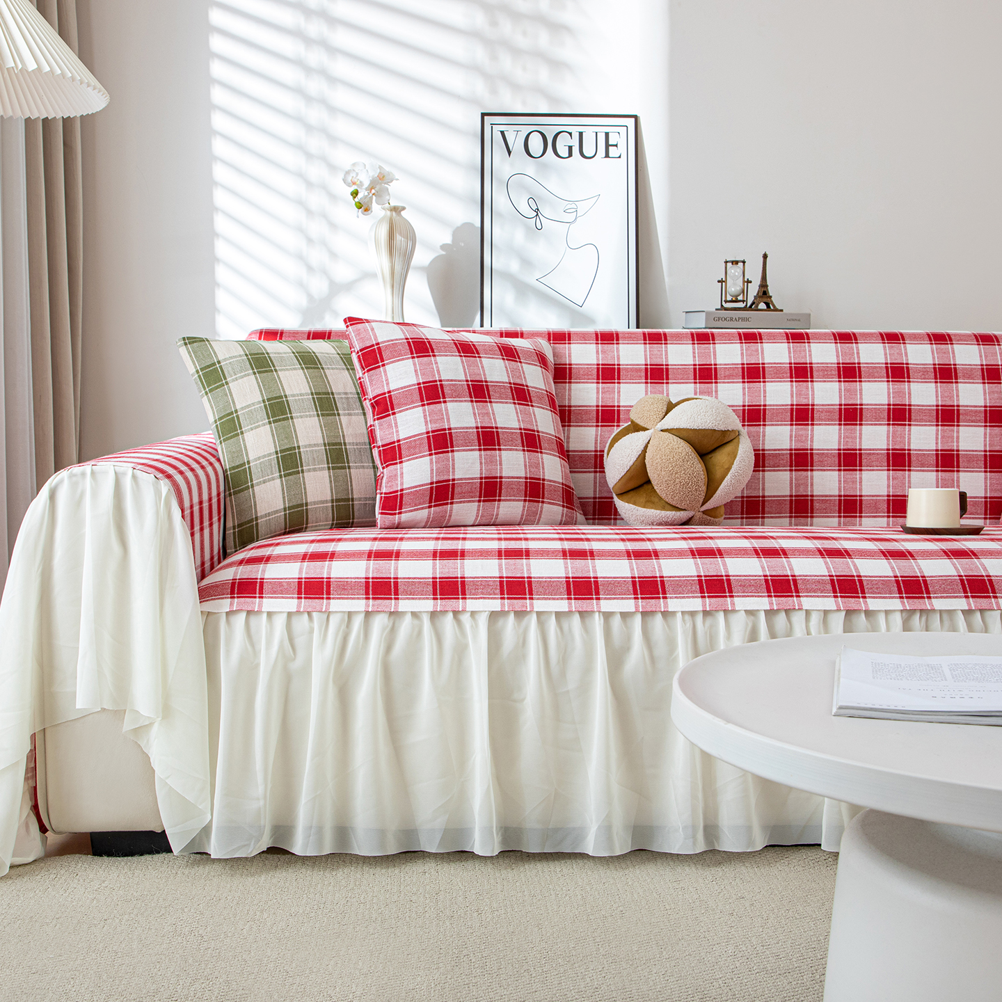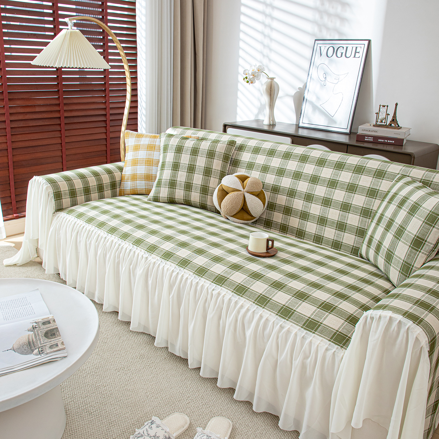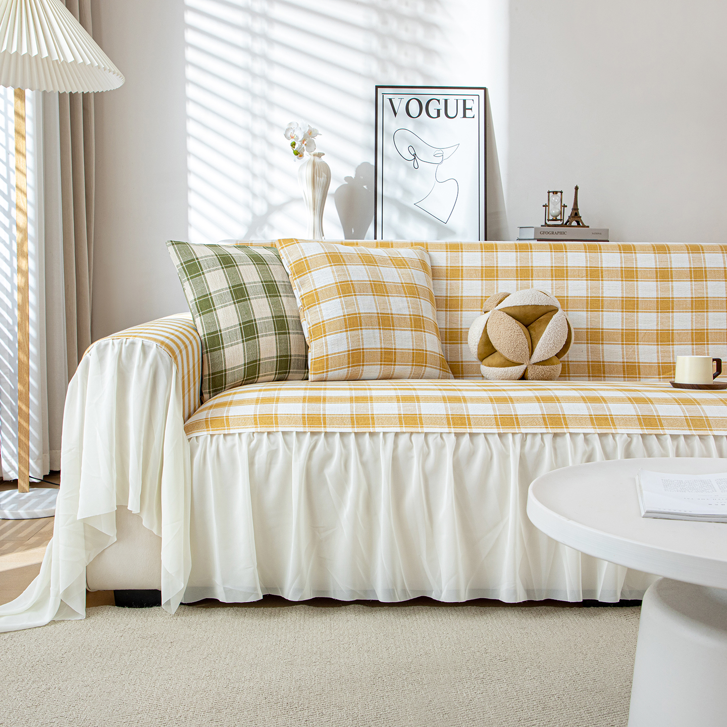 (总)沐沐家纺 2026新款棋格裙边沙发巾