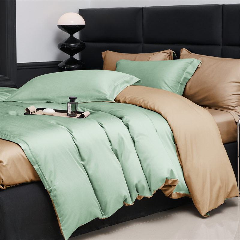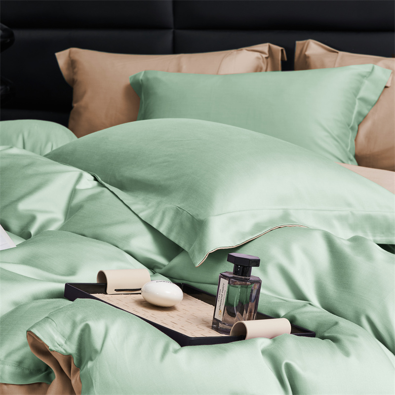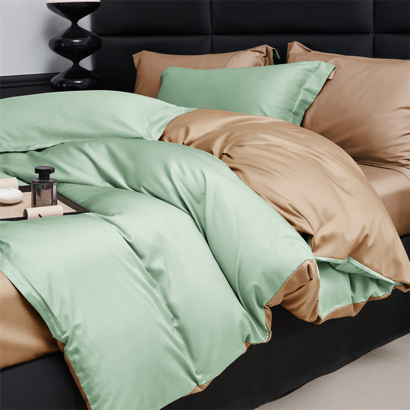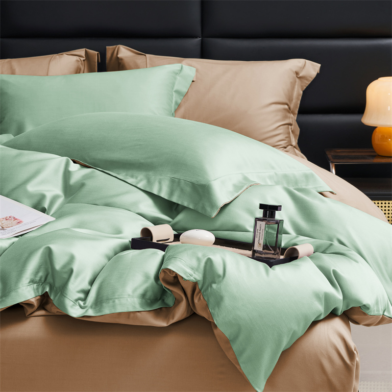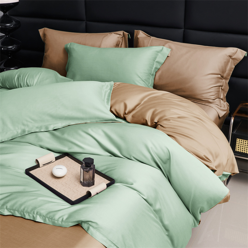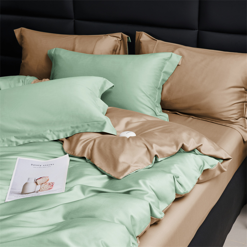 商品名称:顾家家居 2024新款兰精天丝棉磨毛双拼四件套 碧绿+拿铁