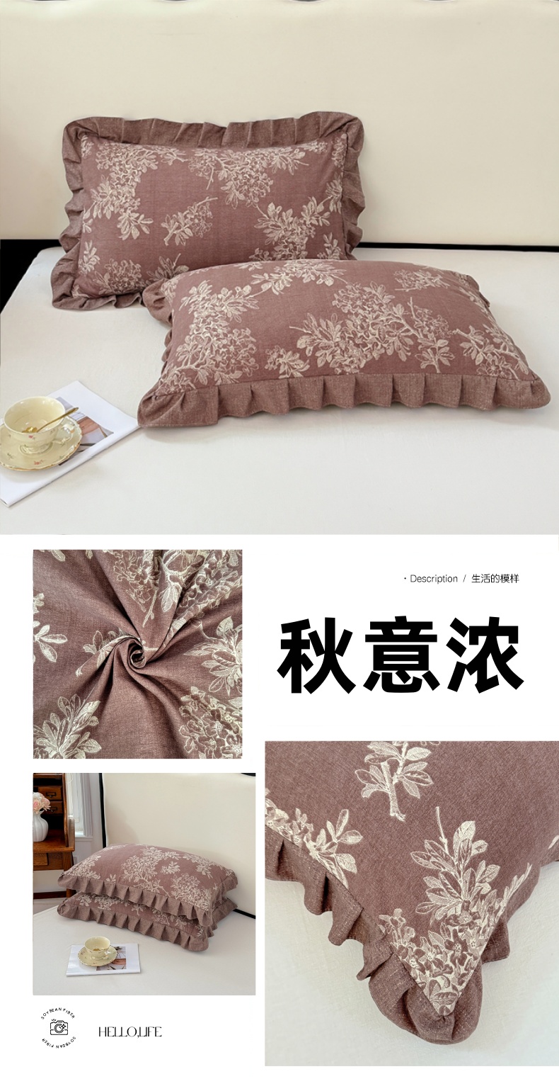 商品名称:梦舒羽 2025新款可水洗原麻花边枕套宿舍单人枕芯套枕头套内胆套仿亚麻 秋意浓