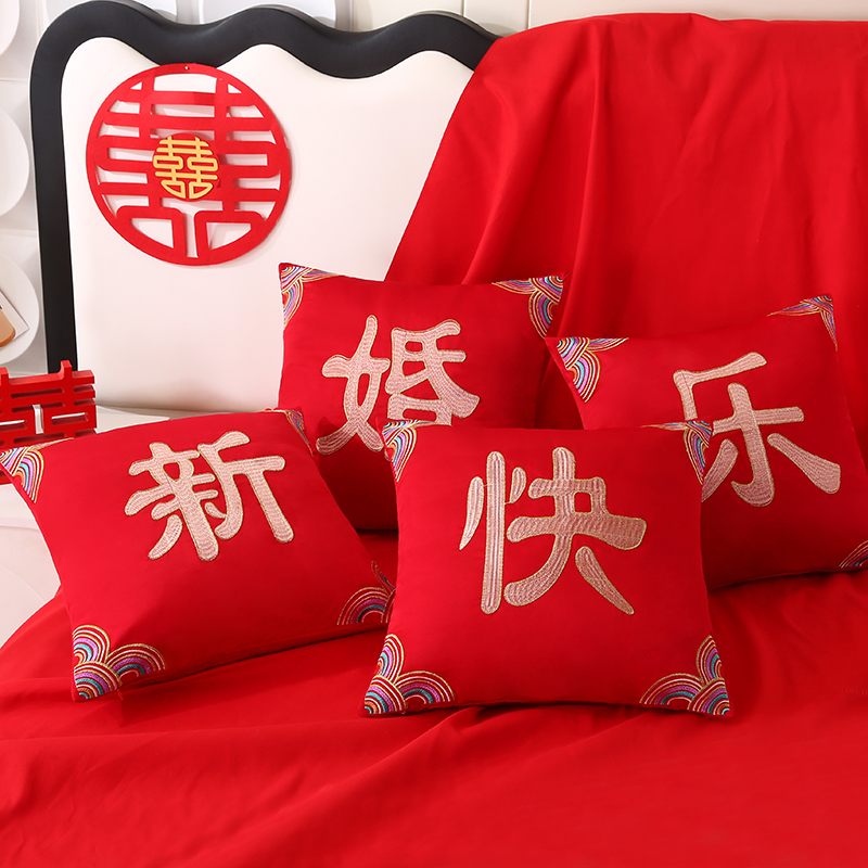 商品名称:贤内助家纺 2025新款新婚快乐结婚抱枕靠枕系列喜庆沙发靠背小抱枕喜床摆件 新婚快乐/套/4只(外套+芯)