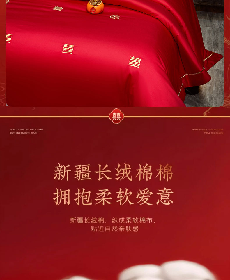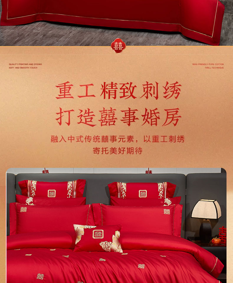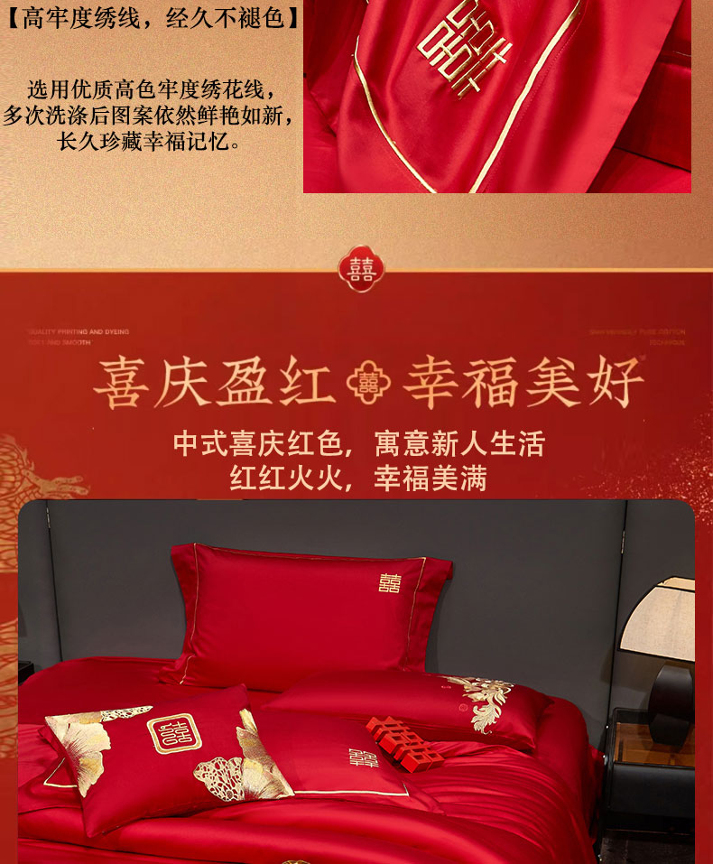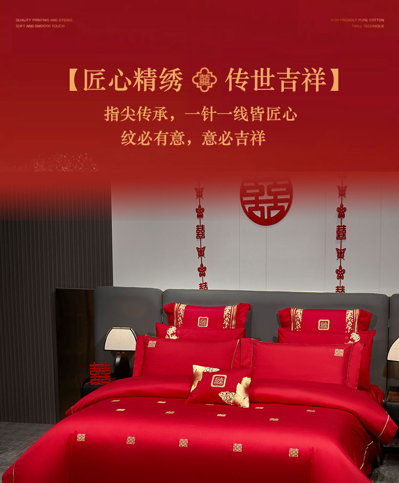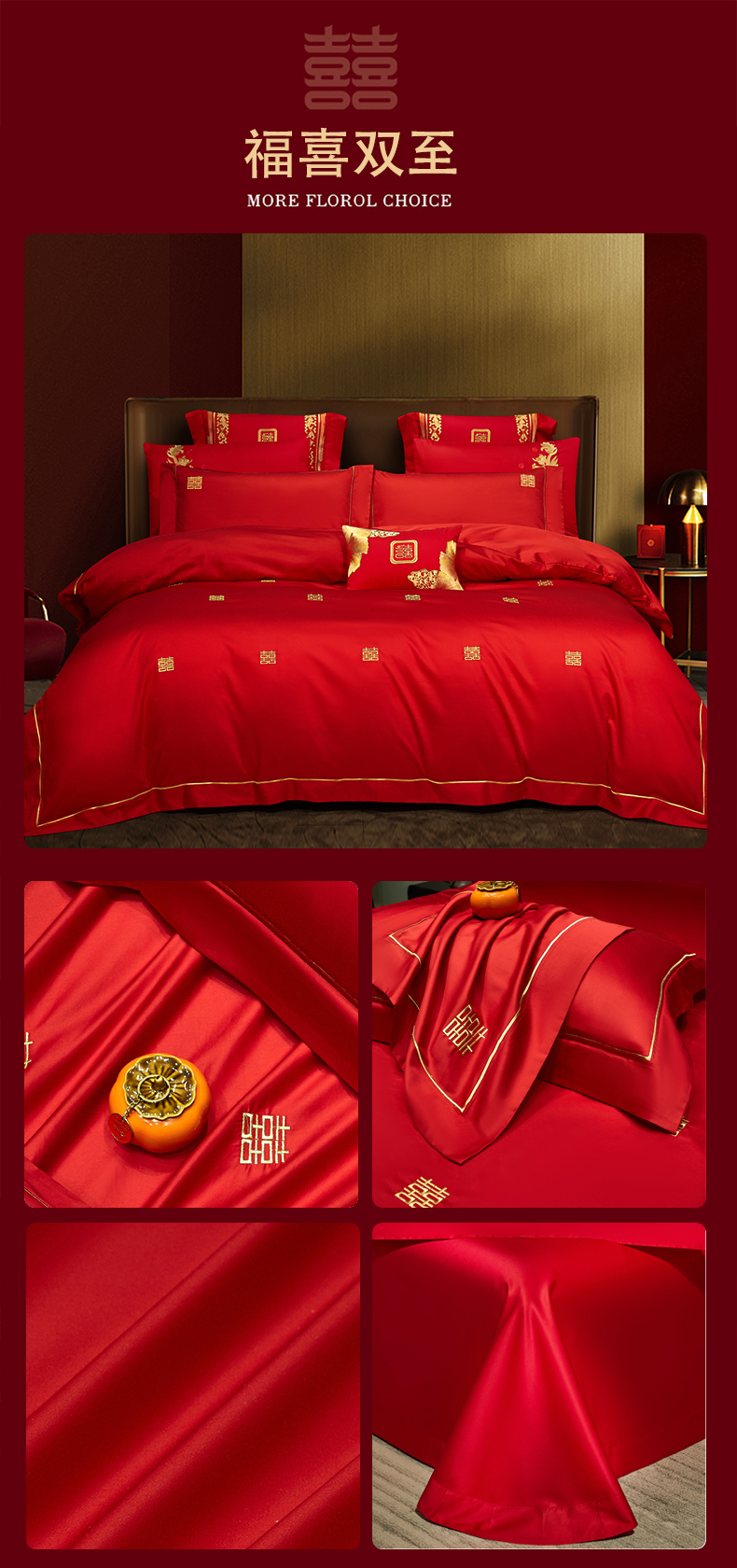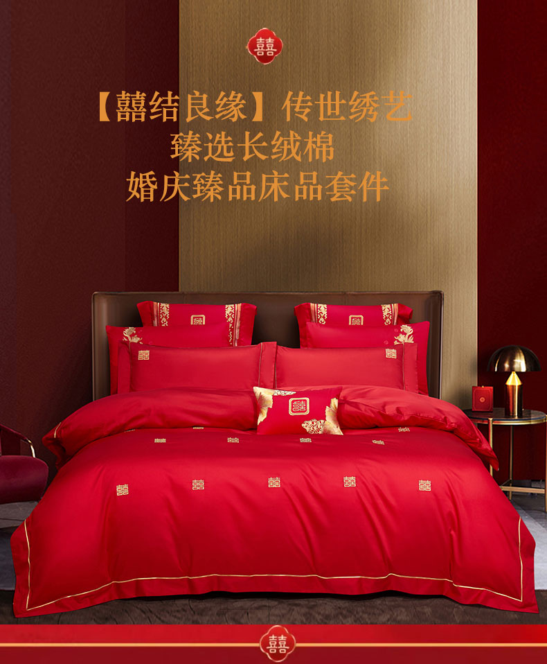 当前位置: 91家纺网 > 商品网购 > 床品套件 > 四件套 > 婚庆四件套 > 蒂爵 2025新款婚庆长绒棉时尚小红书爆款刺绣婚庆四件套多件套-无提花款 福喜双至