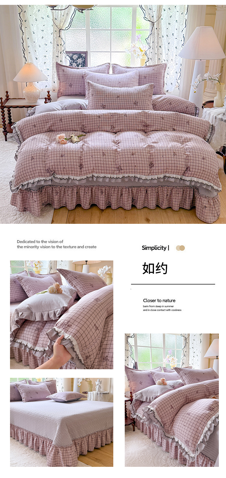 (总)韩约家纺 2026新款法式大花边古法棉感床盖四件套,春熙,宁静时光,紫妍,香兰,思绪,靓彩,艾米,轻颜