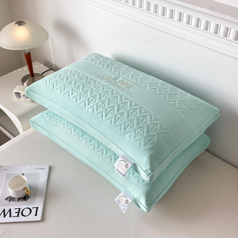 (总)永乐枕芯 2025新款刺绣款高档单人枕头枕芯亲肤透气单人舒睡保健枕睡眠不变形,粉玉,青柠绿,雅韵灰,栀子白,组合图