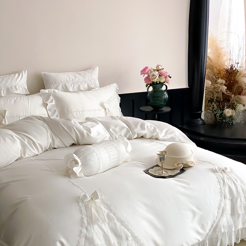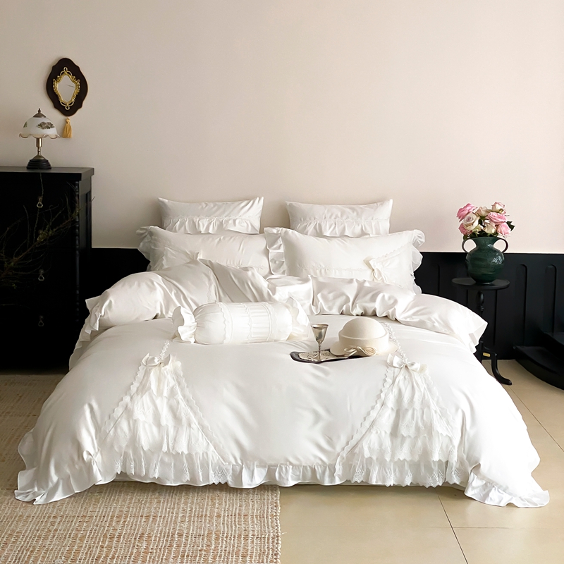 (总)曼布缇 2025新款A类双层纱花边四件套--浪漫香榭(会员减20),茶驼色,豆沙红,巧克力色