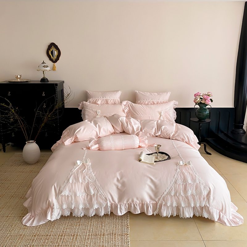 商品名称:曼布缇 2025新款长绒棉工艺款绣花四件套-卡洛琳系列(会员减20,券后388起) 卡洛琳-粉