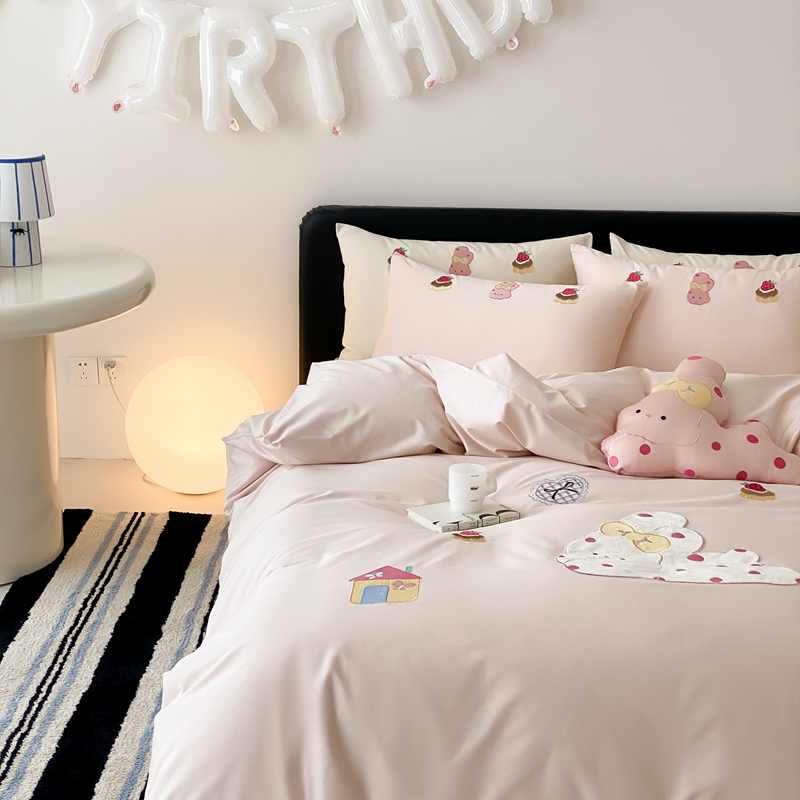 (总)佳汐蓝家纺 2025新款A类100支贡缎长绒棉纯棉四件套-小兔莓莓