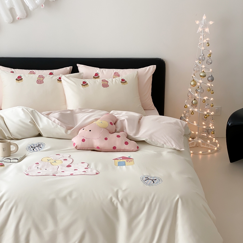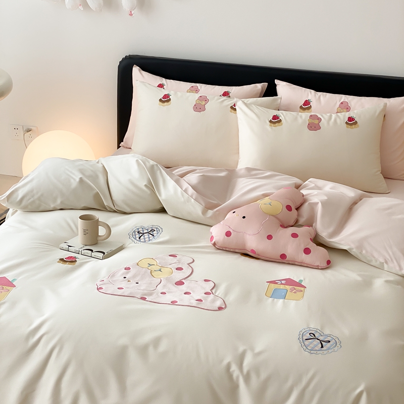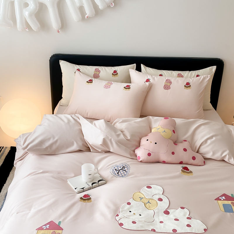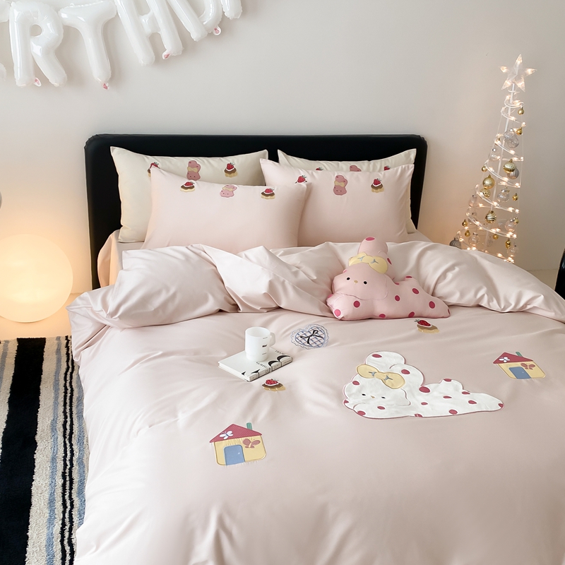 商品名称:(总)佳汐蓝家纺 2025新款A类100支贡缎长绒棉纯棉四件套-小兔莓莓