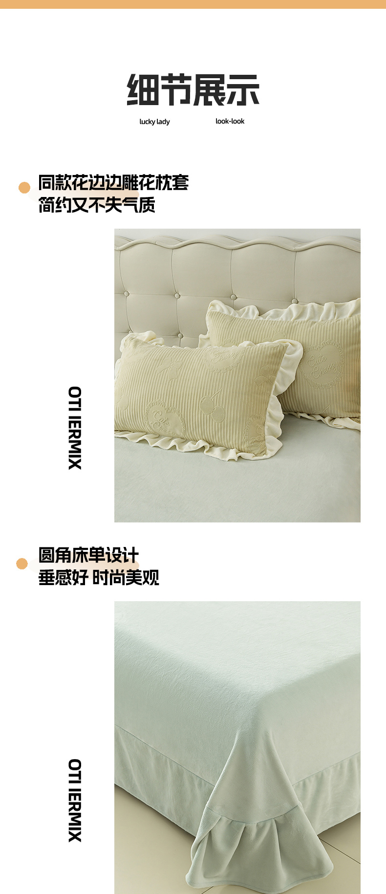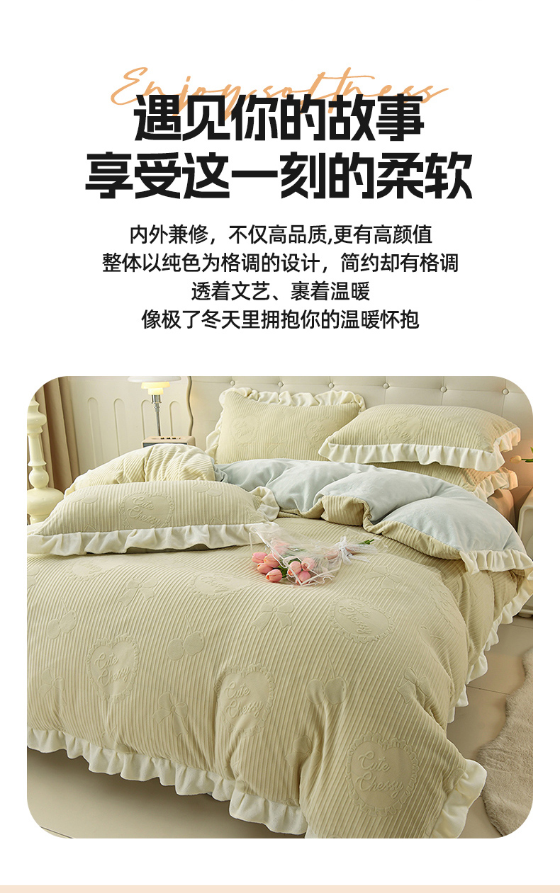 千嘻汇 2025新款8斤牛奶绒金貂法莱绒床裙款保暖绒四件套 叶语,叶语
